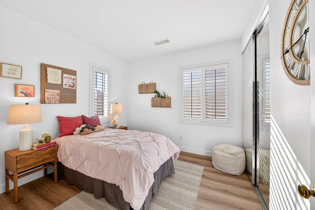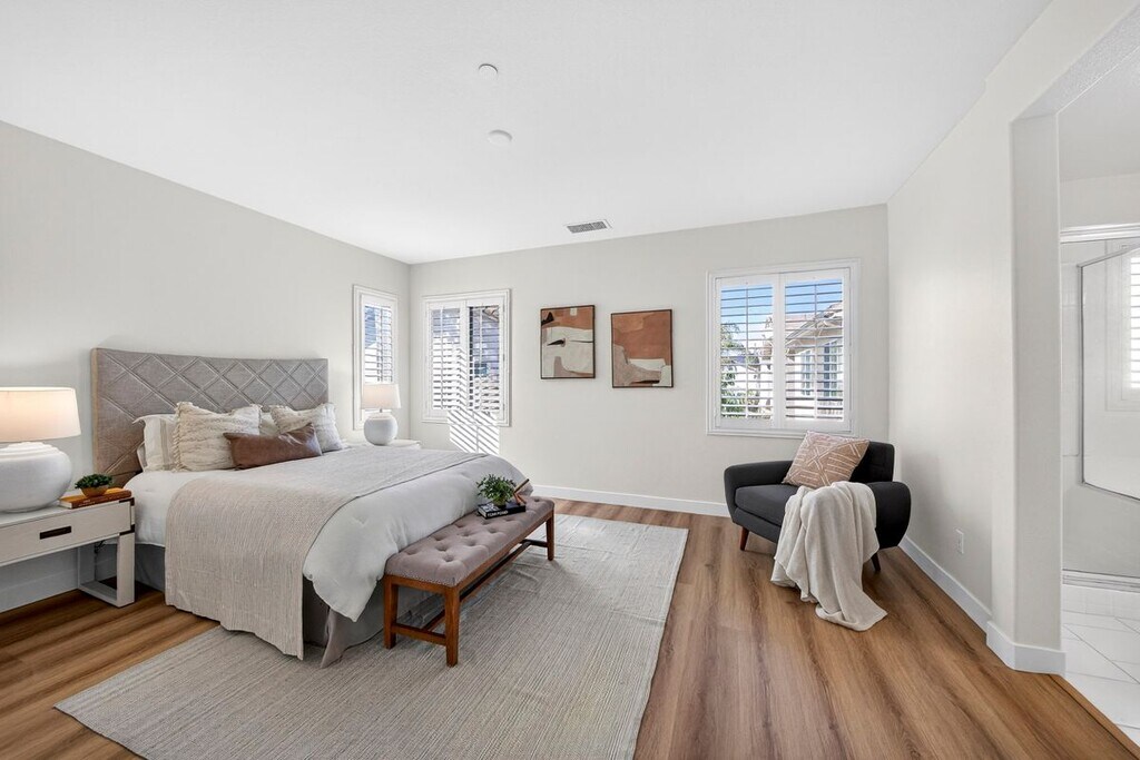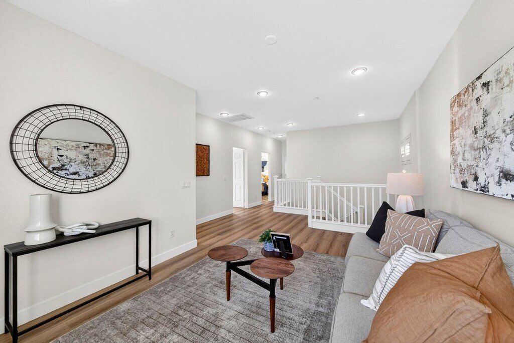 Step into this freshly updated home in the desirable Riverwalk Community of Riverside. Featuring new interior paint and brand-new flooring, this home delivers a clean, modern, move-in ready feel from the moment you enter. The main level offers an expansive open floor plan with abundant natural light, highlighted by oversized windows, plantation shutters, and a generous living area perfect for relaxing or entertaining. The bright kitchen includes ample counter space, a center island, and easy access to the private patio-ideal for outdoor dining or weekend gatherings. Upstairs, the new flooring continues, enhancing the crisp and contemporary look throughout the bedrooms and hallway. The thoughtful layout offers spacious rooms and great functionality for everyday living. Located in the well-maintained Riverwalk community, residents enjoy resort-style amenities including a sparkling pool, lush greenbelts, walking paths, and beautifully landscaped common areas. The neighborhood provides a peaceful residential atmosphere with quick access to La Sierra University, schools, parks, shopping, dining, and major freeways. With fresh paint, new flooring, and a bright open layout, this home is truly move-in ready and an exceptional opportunity in one of Riverside's most desirable neighborhoods. Furniture shown is for staging purposes only and is not included in the lease.