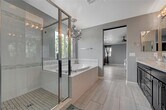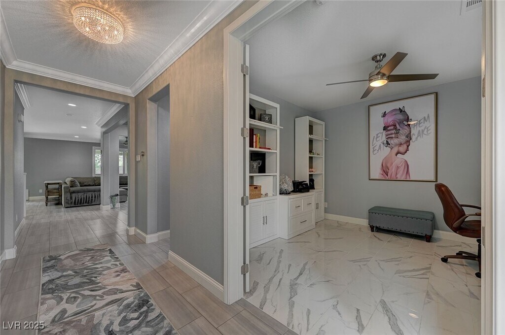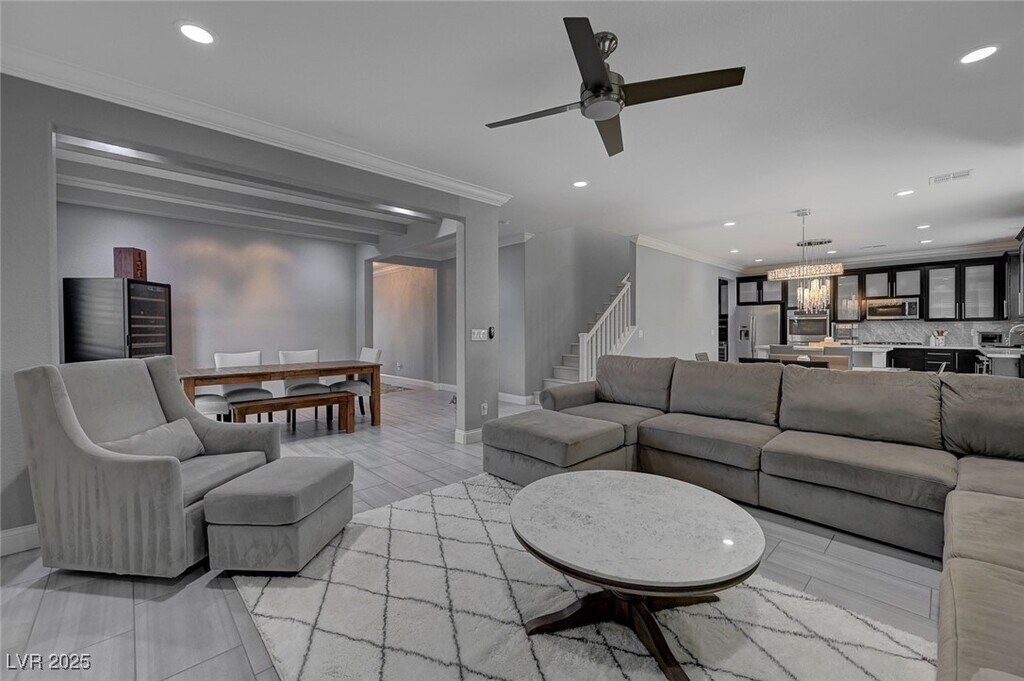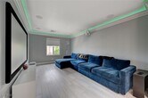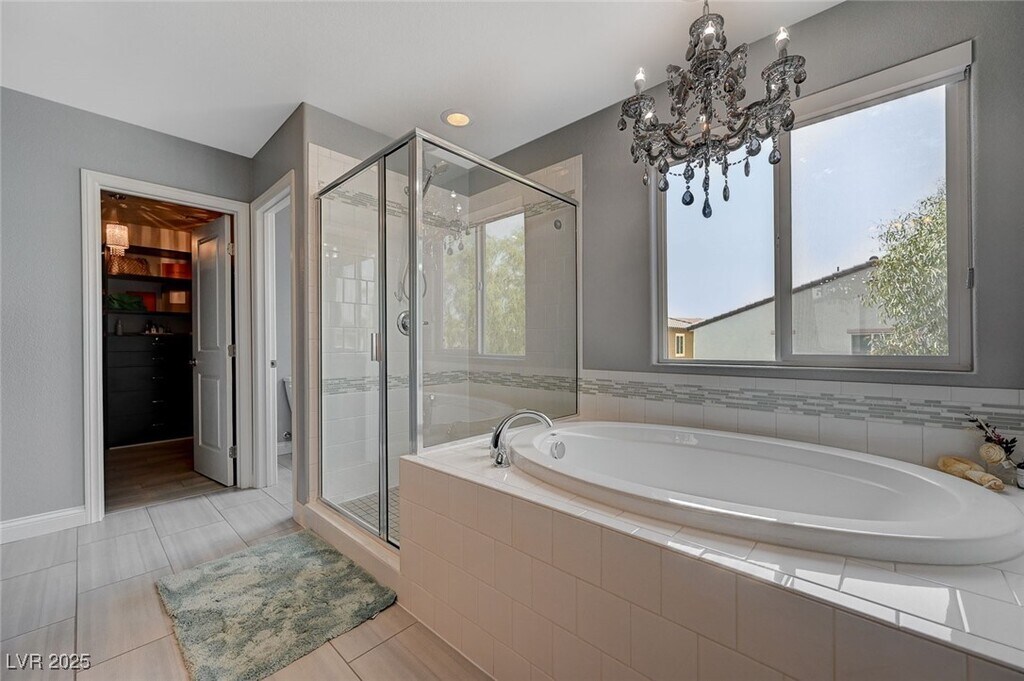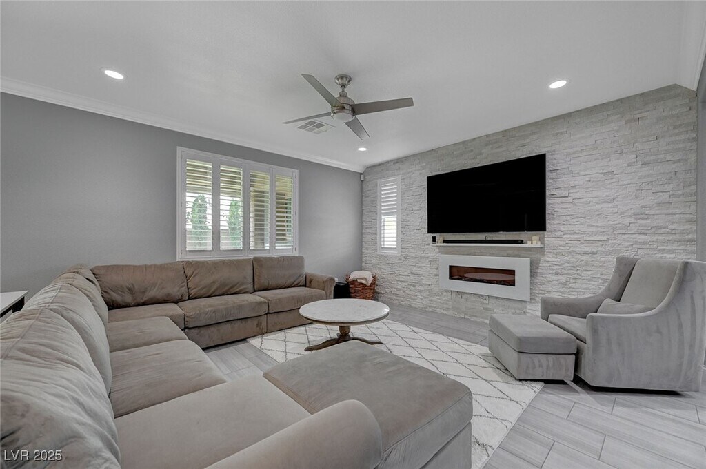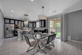 Welcome to this stunning Southern Highlands home featuring 4 bedrooms, 3.5 bathrooms, plus an office, den, or optional 5th bedroom downstairs. Designed with modern elegance, this open-concept layout showcases a white stone feature wall in the great room, upgraded chandeliers, and marble counters throughout. The chef’s kitchen is a true showstopper, complete with a built-in wine fridge, oversized pantry, brand-new dishwasher, five-burner range, and a large island perfect for entertaining. Enjoy stylish living with porcelain tile and luxury vinyl flooring—no carpet anywhere. Shutters downstairs and blackout shades upstairs add comfort and privacy. A movie lounge with built-in speakers creates the ultimate entertainment space, while the primary suite offers dual closets with custom built-ins. Step outside to an entertainer’s paradise featuring a built-in fire pit, chef’s BBQ with fridge, Zen fountain, string lights, and a pergola-covered hot tub. Solar paid by Owner.