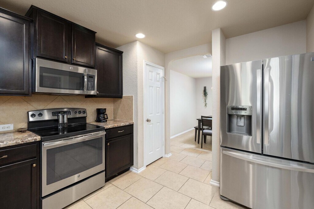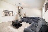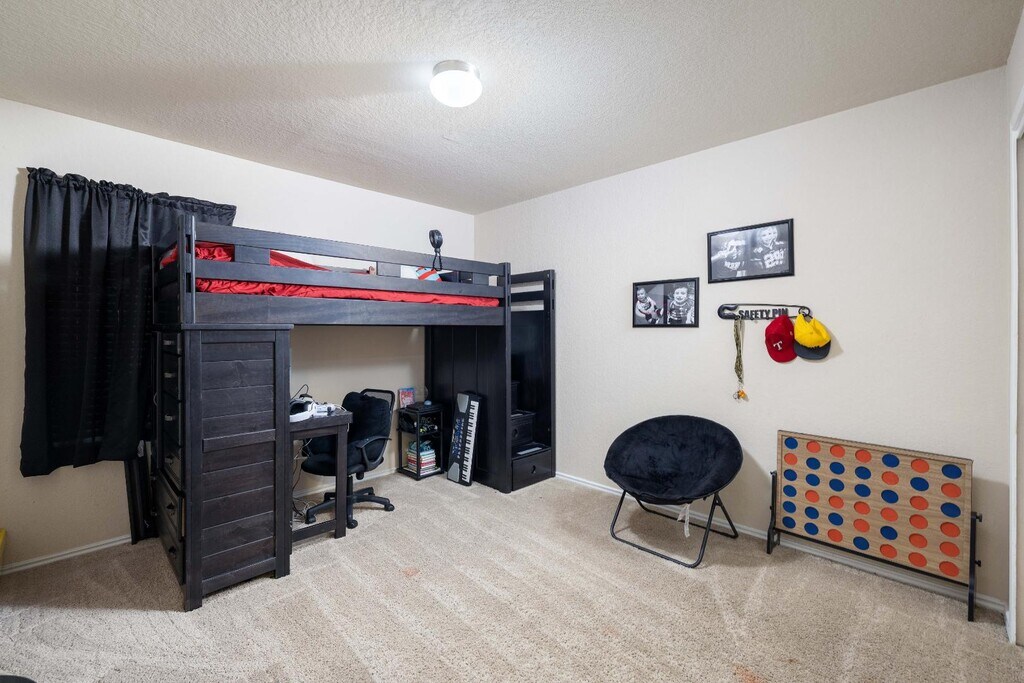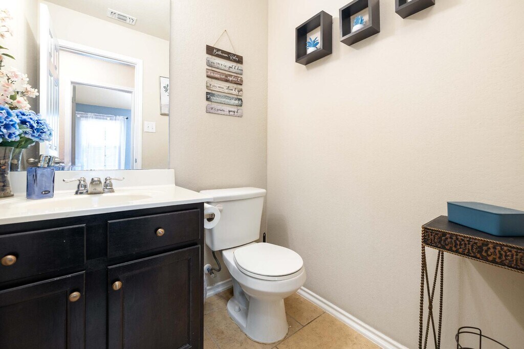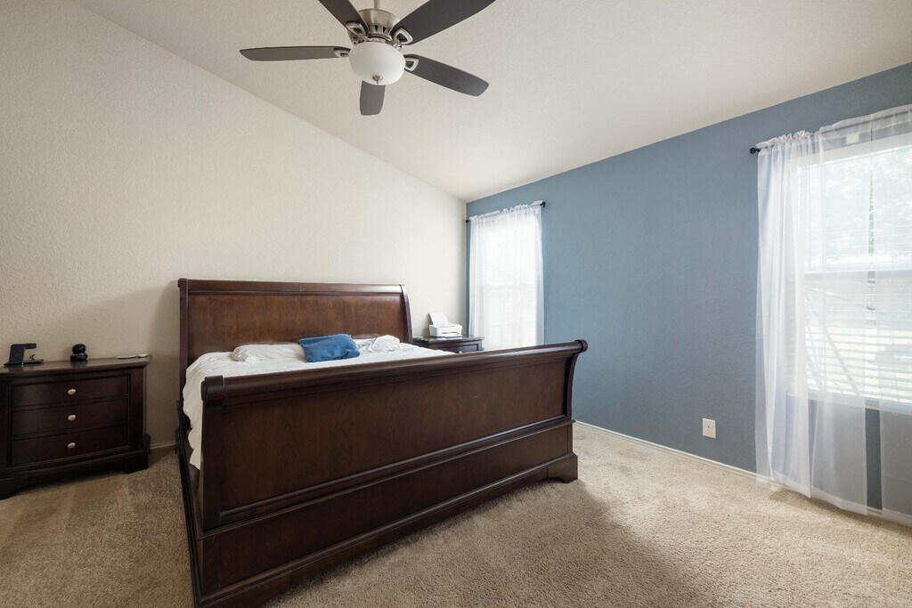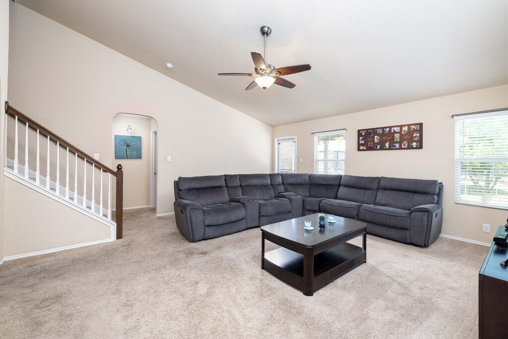 Nestled in the welcoming Laurel Mountain Ranch community-complete with a sparkling pool, playground, dog park, and its own elementary school-this home is ready to be your personal sanctuary. Fresh exterior paint sets the stage, while the interior offers a blank canvas to bring your vision to life. Step inside to an inviting, light-filled layout where the spacious dining room flows seamlessly into a kitchen with stainless steel appliances and a breakfast bar, then opens to a breathtaking living room with soaring two-story ceilings. The downstairs primary suite is your private retreat, featuring a charming barn door leading to the bath. Upstairs, three generously sized bedrooms with walk-in closets and a huge game room/second living area create the perfect balance of connection and personal space. Outside, a covered patio and cozy fire pit invite evenings under the stars, with a roomy yard for kids, pets, and laughter to roam free.