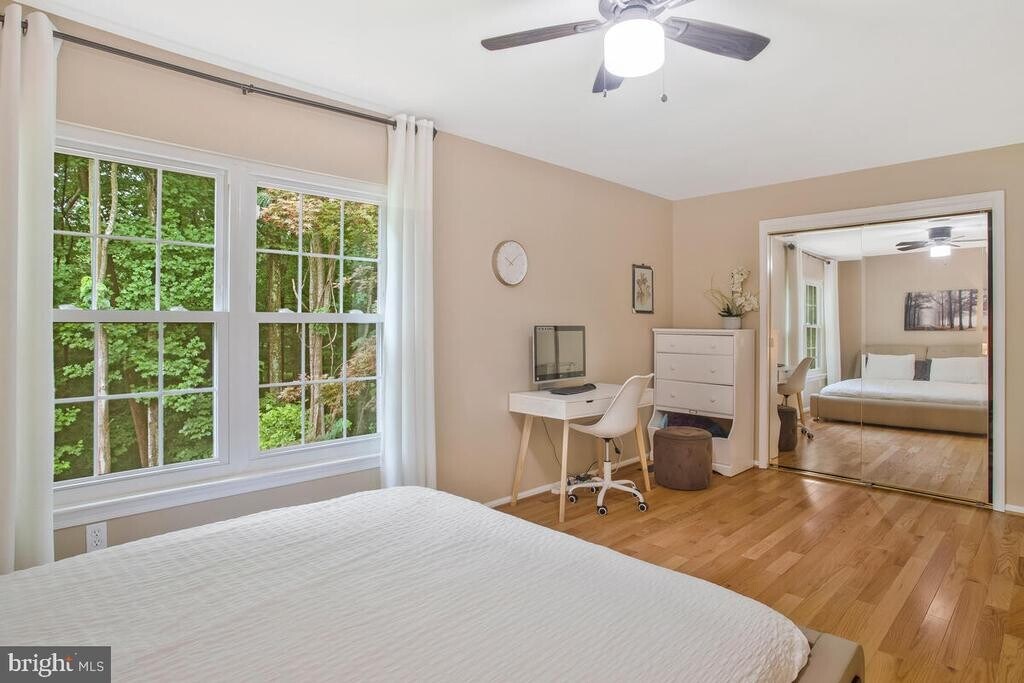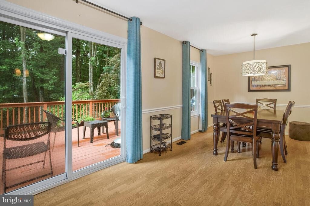 Upgraded End-Unit Townhome. Features include an upgraded eat-in kitchen with granite surfaces, hardwood flooring, and a large rear deck. The floor plan offers a finished walk-out lower level with a full bathroom and access to a fenced rear patio. Modern finishes throughout and additional windows provide ample natural light.