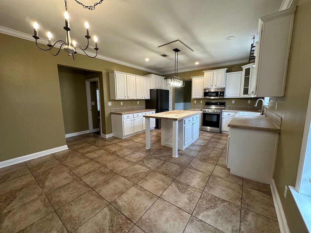 Charming and spacious home for rent in Leesburg! Beautiful new flooring welcomes you into the large living area. The master suite is also large with walk-in closet, dual sinks, and garden tub. Beautiful recently replaced vinyl plank flooring throughout! In the kitchen you will find stainless steel appliances, plenty of cabinet space, and butcher block island. This unique home sits on a great piece of land with a fully fenced in backyard featuring double gates for easy access and a shady spot for pets in the kennel! First month's rent, security deposit, and $145 lease fee due prior to move-in with approved application.