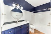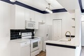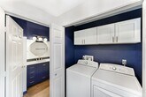 *Available Now* 1 bed, 1 bath, unfurnished, open floor plan, remodeled, Royal Greens unit with a NAVY, WHITE & GOLD color scheme. Hickory wood look tile shines throughout the entire unit and sets off the navy baseboards and crown molding. Don't miss the modern gold light fixtures in the dining room, kitchen, hall, and bathroom. The open concept kitchen features white shaker cabinets with soft close cabinets & drawers, sleek gold cabinet pulls, white quartz countertops and breakfast bar, navy subway tile backsplash, gold pull down faucet, open shelving, and separate pantry. The master bedroom features a navy accent wall, ceiling fan/light, door to the screened-in lanai, and a LARGE walk in closet. The bathroom has a soaker tub with gold hardware, Navy vanity with quartz top and sleek gold faucet. There is laundry in the unit with beautiful white cabinets above. Watch the sun set over the lake from your large screened-in lanai with storage closet. You will love Royal Greens, a gated community featuring a pool, indoor basketball court, dog park, fitness center, and clubhouse. Located in Gateway, one of Southwest Florida's premier communities, with miles of walking & biking trails, and parks. Very close to Publix, Gartner, JetBlue Park, RSW International Airport, and I-75. Only ONE pet allowed per HOA.