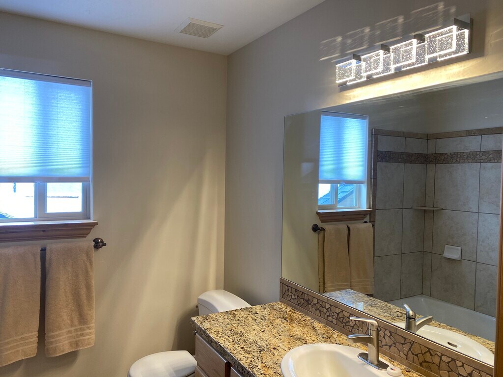 Furnished luxury custom rambler in upscale Sandy neighborhood. 5 bedroom 4 bathroom home boasts main floor master suite with walk in closets, jetted tub. Open floor plan with great room, soaring vaults, gas log fireplace, high end stainless steel appliances, knotty alder, granite countertops and travertine tile. 3 car garage with additional parking. Ample storage space. Close to parks, schools, shopping, dining, recreation center. Minutes to the best skiing. Quick and easy freeway access. no smoke, no pets