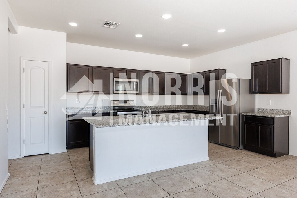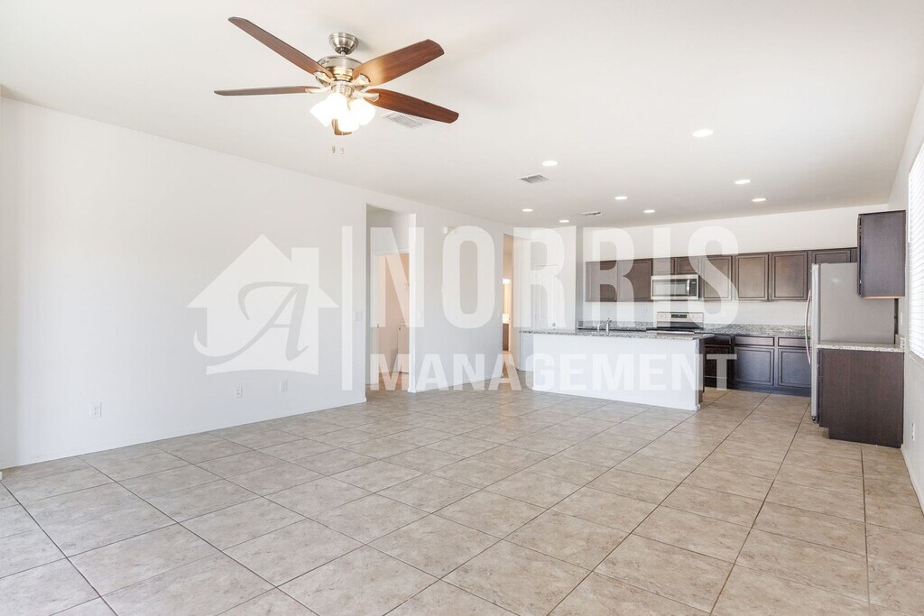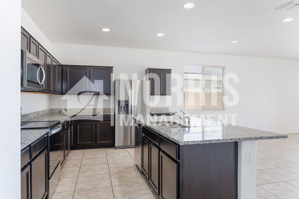 Welcome to your beautiful home in a great location in Cottonwood Ranch. The home features all tile floor throughout, with four bedrooms and two bathrooms. The kitchen comes equipped with all stainless steel appliances including refrigerator, dishwasher, microwave and electric stove. There is a large island that opens up to the living room with a sink built in. You will find a washer and dryer included with a two car garage. Walk through the rear sliding glass door with an open concept backyard with all dirt landscaping. The tenant is responsible for electric, water, sewer and trash. Solar payment of $180.00 will be billed back to the tenant monthly in addition to rent. Pets are allowed with owner approval. A $200 non-refundable pet fee for the first pet and $100 for each additional pet. Security deposit is based on credit, background and rental history. Click the link for a Virtual Tour: