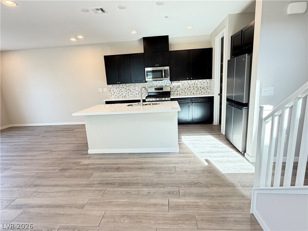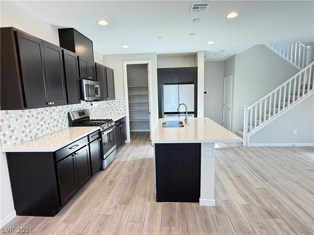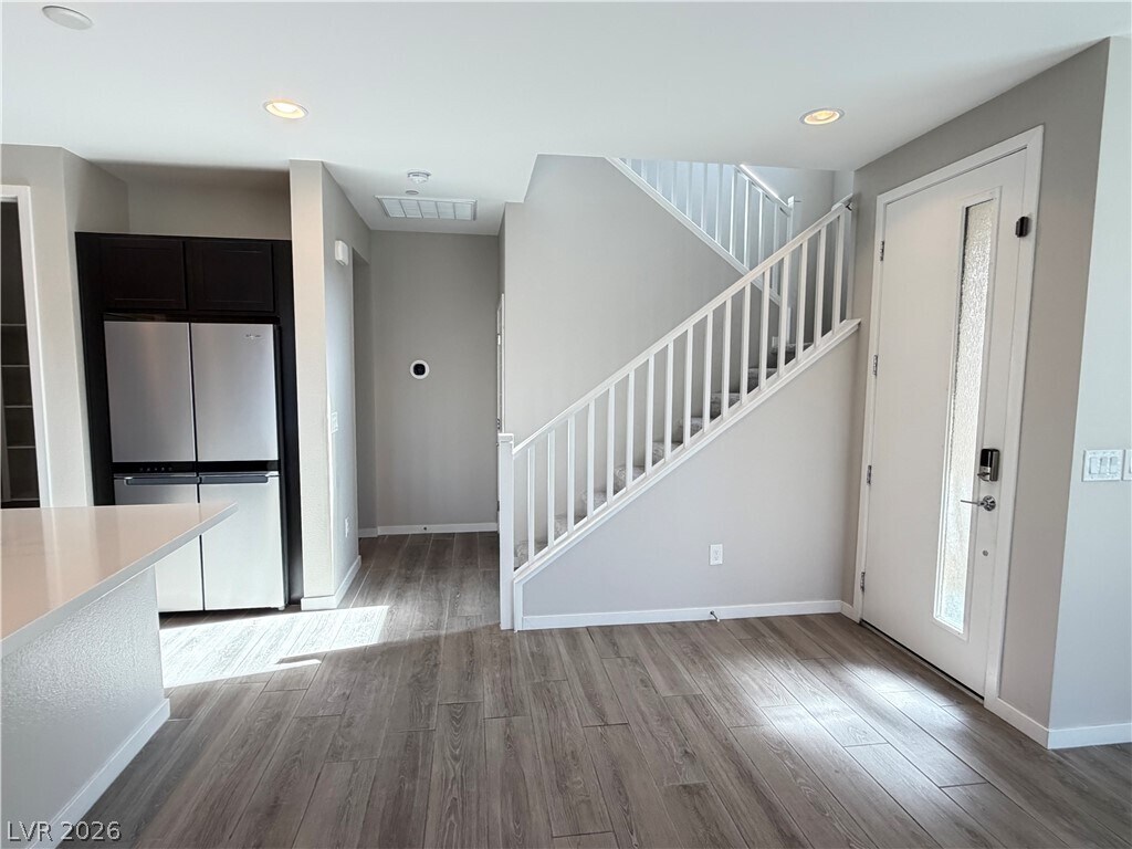 Just minutes or even a short stroll to Downtown Summerlin for dining and shopping, Las Vegas Ballpark, City National Arena, Red Rock Resort, walking or bike paths, and parks. This modern 2-story townhome, located in the prestigious Summerlin community of Affinity, offers 4 bedrooms, 3 bathrooms, a loft, and a 2-car garage, blending comfort, convenience, and modern design. The first level boasts an open layout with great room, dining area that opens to a patio, a sleek kitchen featuring an island, stainless steel appliances, custom backsplash, and a walk-in pantry. A full bedroom and bathroom on the main floor are ideal for guests or a home office. Upstairs, you’ll find a versatile loft, laundry room, two secondary bedrooms, and the primary suite, complete with a walk-in closet. As a resident of Affinity, you’ll enjoy resort-style amenities including two sparkling pools, two spas, a BBQ area, a fully equipped fitness center, and a multipurpose clubhouse.