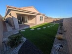 This stunning rental offers a paver driveway, desert landscaping, a front courtyard, and a welcoming porch. The open floor plan features 10-ft ceilings and wood-like tile plank flooring in the main living areas and bathrooms. The living room is equipped with surround sound, perfect for entertaining. The kitchen includes an island with a breakfast bar, quartz countertops, soft-close drawers, a 5-burner cooktop, double ovens, stainless steel appliances, a dishwasher, and a pantry. The home has dual primary suites: the first includes a walk-in closet, dual vanity, and rainfall shower, while the second has a full bathroom. A versatile den can serve as an office or third bedroom. The laundry room offers extra storage, and the garage features high ceilings, epoxy flooring, a tankless water heater and an insulated door. The backyard boasts a 3-panel sliding door, covered patio, pavers, artificial turf, and desert landscaping. EV Charging ready!!! Schedule a showing today!