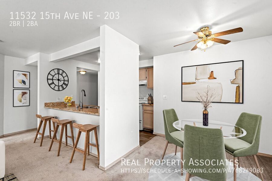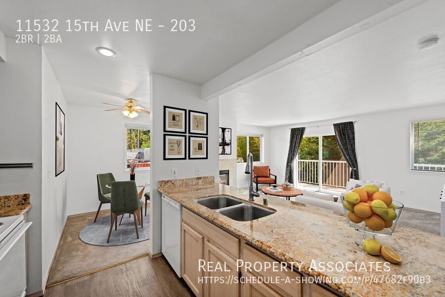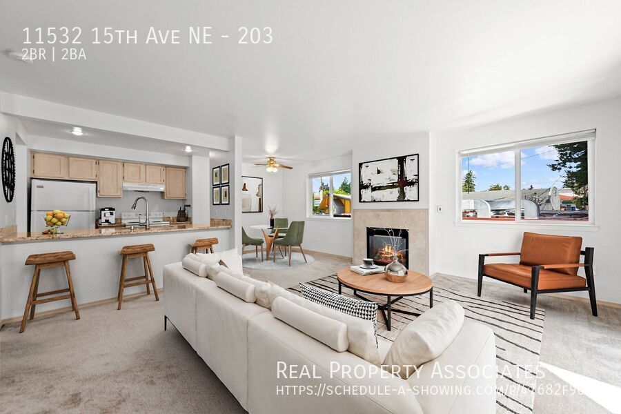 Tour & Appy same day $800 bonus appllied to first full months rent. Looking for immediate occupancy. Welcome to Pinehurst Lane, a spacious 2-bedroom, 2-bathroom condo corner unit located in the vibrant city of Seattle, WA. This unit boasts a generous 1000 sqft of interior space, featuring an open concept layout, granite countertops, and a mix of tile and carpet flooring. The condo is a bright corner unit with a large private deck that offers territorial views and a north & west-facing orientation. The unit is situated at the back of the building, off the street side, providing an added sense of privacy. The condo comes with a host of amenities for your convenience. These include a dishwasher, a gas fireplace, and a full-size W/D. The building also provides an elevator, secured key access, and an intercom lobby/entrance for added security. The location is a commuter's dream, with easy access to freeways, a close proximity to the transit center, and a short distance from the Lightrail Station. The neighborhood is walkable and surrounded by a variety of shopping options, restaurants, and more. Street parking is available, and the unit comes with one parking spot. The rent includes natural gas, and the unit has new blinds.. With easy access to both UW and Downtown, this condo offers a perfect blend of comfort, convenience, and city living. Photos are be AI Staged NOTE: unit comes with only 1 parking stall. Additional parking will need to be street parking. There is street parking on the side streets. Lease Details: • Application Fee: $45 per adult • Holding Fee: $500 (applies to security deposit) • Due at Lease Signing: Balance of deposit + first month’s rent • Term: 12 months • Pets: Dogs & cats allowed (breed restrictions & HOA rules apply) 1. Pet Rent: $50 per animal 2. Pet Deposit: $400 per pet (or max 25% of total monthly charges) 3. Pet Application: $30 per pet (charged only if approved) • Deposit: Equal to 1× rent • Utilities: Tenant establishes electricity; $75 W/S/G contribution per person • Renter’s Legal Liability Insurance: Required; $30/month Benefit Package includes coverage up to $10K, liability protection, online portal access, $1,000 homebuying credit, rent rewards, and positive credit reporting. Providing your own qualifying insurance can reduce or waive the fee. • Requirements: 700+ credit score, 1 year rental history, 3× monthly rent income, 1 year work history, background check Resources: • Video Tour: • Request Tour Link: • Questions: Liv McCoy – | (Tue-Sat) • Professionally Managed by Real Property Associates • Application Criteria: RPA Application Criteria • Additional Listings: Keywords: Victory Heights, Pinehurst, Northgate, Maple Leaf, North Seattle, Lake City, University Of Washington, UW 1 Assigned Parking Spot In Garage 2 Full Bathrooms Available Now Bright Corner Unit Close To Bus Line Close To Lightrail Station Close To Transit Center Easy Access To Freeways Easy Access To Uw & Downtown Full Size W/D Gas Gas Fireplace Gated Underground Garage Granite Countertops & Bar Intercom Lobby/Entrance Interior Space 1000 Sqft Large Private Deck Lots Of Shopping/Restuarants/And More Master Bathroom Natural Gas Included In Rent New Blinds Throughout North East Facing Open Concept Secured Key Access Small Dog Or Cat Friendly Territorial Views Tile & Carpet Flooring Unit At Back Of Building Off Street Side Very Bright Walkable Neighborhood Washer/Dryer Washer/Dryer In Unit