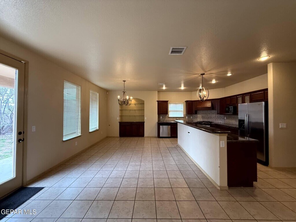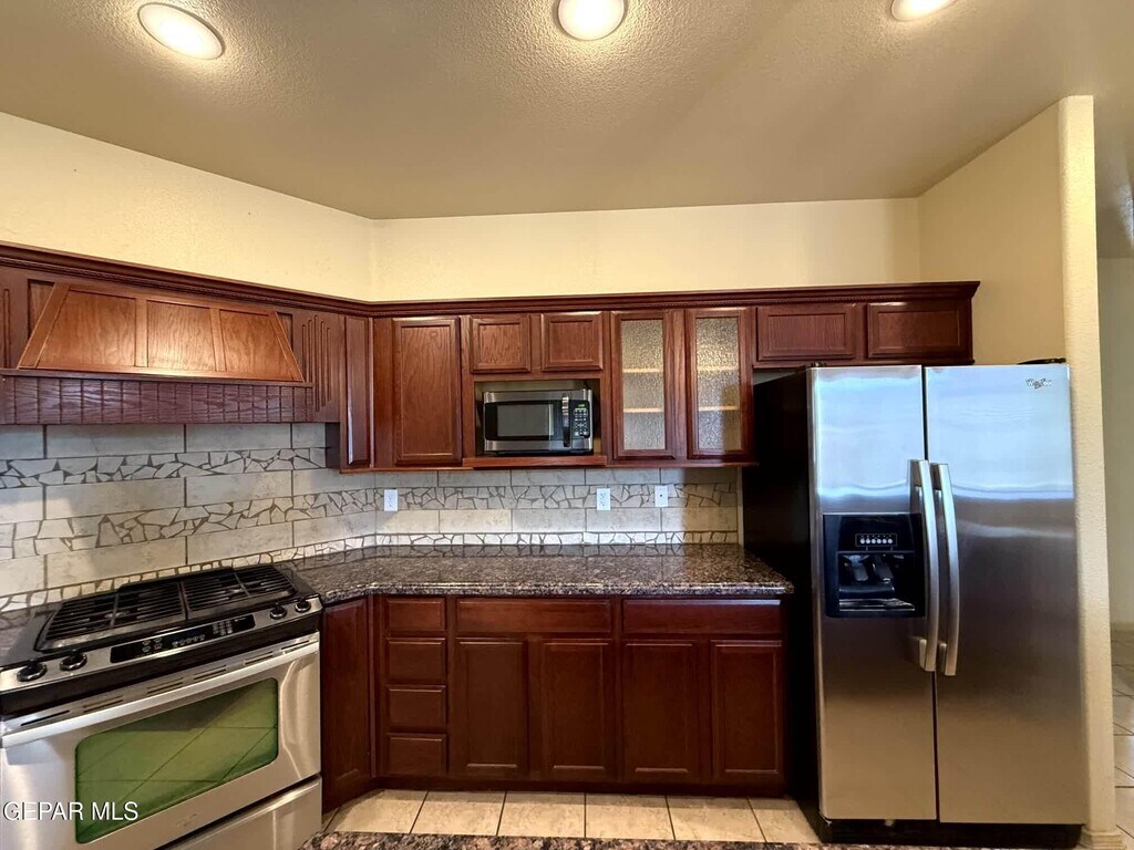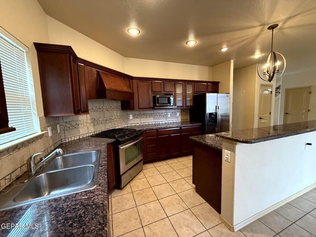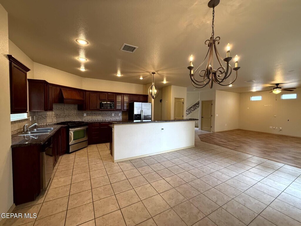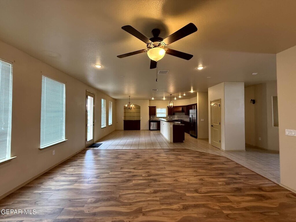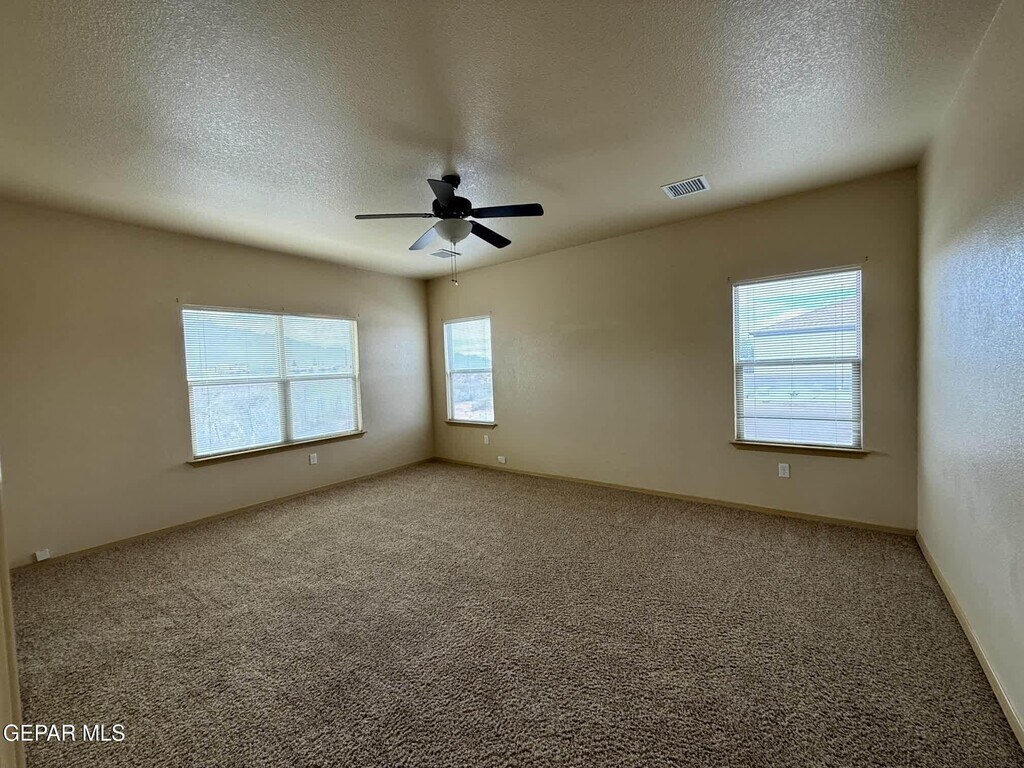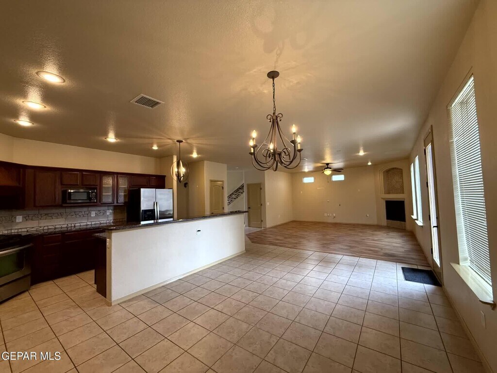 4 bedrooms,2 story home located in the Sandstone Ranch Estates subdivision. Built in 2012,features 2428 sq. ft. of living area. Family room,dining room and den with fireplace. Open kitchen with island,granite countertops,plenty of storage space and all appliances included. Indoor laundry room with washer and dryer hookup. 3 baths. 1 downstairs bedroom and 3 bedrooms upstairs. Master bedroom features a large walk in closet,2 sink vanity,jetted tub,separate shower. All bedrooms are good size with ample closet space. Front and backyard with low maintenance rock landscape. Backyard offers a great view of the Franklin Mountains. 2 car garage. Refrigerated A/C. Easy access to shopping,entertainment,dining,Fort Bliss,I-54. Pets may be allowed subject to restrictions and additional fees. Wilkl be avaiulable for move -in November 1