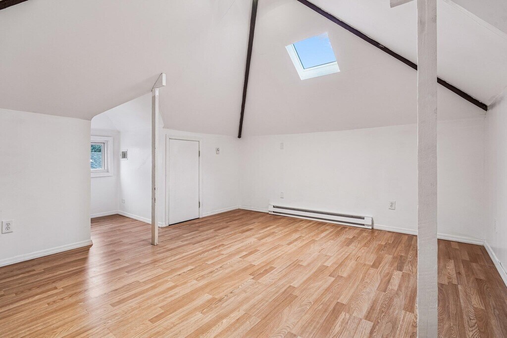Welcome to this bright and spacious second-floor apartment in a well-maintained two-family home in Fort Lee. Offering 3 bedrooms plus a large refinished upper-level studio-style space that provides outstanding flexibility for work, fitness, or creative use. This freshly updated unit features refinished hardwood floors, generous room sizes, and excellent natural light throughout. The main level features tall ceilings and oversized windows, creating an inviting atmosphere throughout. The eat-in kitchen includes ample cabinetry, marble-style counters, a subway tile backsplash, a full gas range, a stainless refrigerator, and the convenience of an in-unit washer/dryer. The bathroom offers a comfortable layout with full tile surround and an extended vanity area. Step outside to enjoy your private outdoor deck, perfect for relaxing or entertaining. Parking is available, and the property is ideally located near shops, transportation, schools, and major highways.