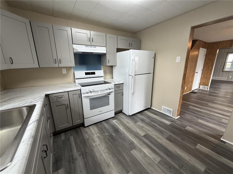 AVAILABLE NOW * LEFT SIDE only of duplex * Two Bedroom and One Full Bathroom * NEW luxury vinyl plank flooring throughout first floor, wall to wall carpet on steps and in bedrooms, all new kitchen, all new bathroom, light fixtures, fresh paint, and more! * Spacious living room at entry * Large dining room * Brand new fully equipped kitchen (electric cook top, dishwasher, refrigerator) with abundance of cabinets and cabinets, luxury vinyl plank flooring * Full bathroom with new flooring, cabinet, toilet, sink, fixtures * Upstairs are two good sized bedrooms with new light fans, carpeting and plenty of closet space * Full basement with plenty of storage * Laundry hook ups only with utility tub * Pets at owners discretion ONLY (additional fees/deposits) * Tenant responsible for all utilities, lawn maintenance and snow removal * Shared rear yard * Covered front porch * Two off street parking front of home * Convenient location to turnpike, Rt 28, shopping, eateries *