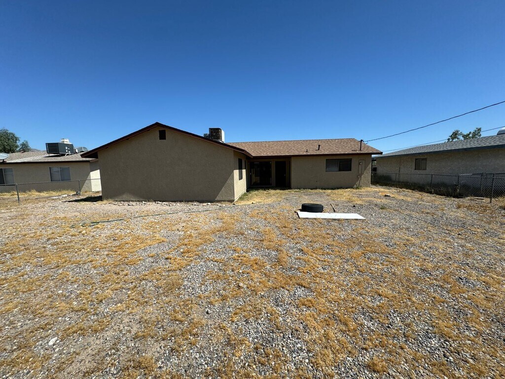 Welcome to this charming 3 bedroom, 2 bathroom house in Bullhead City, AZ. This home features a 2 car garage, perfect for storing your vehicles or outdoor equipment. Enjoy the fenced yard in front and large fenced rear yard! with a RV gate in rear leading to a alley which makes storing Boats, Trailers, Motorhomes EASY and convenient and ideal for pets or outdoor gatherings. Cozy up by the fireplace in the spacious living room. Bedrooms are large and handle Full size and for Queen and King beds. Conveniently located near city services and schools, as well as restaurants and shopping. Just blocks away from Rotary Park and the Colorado Recreation area, this house is situated in a family-friendly neighborhood. Don't miss out on this wonderful opportunity to make this house your home. Buck Reynolds Real Estate, Steven Buck bkr
