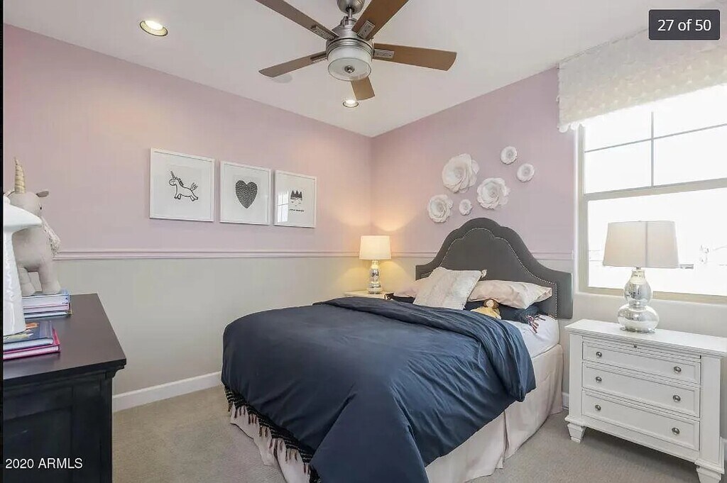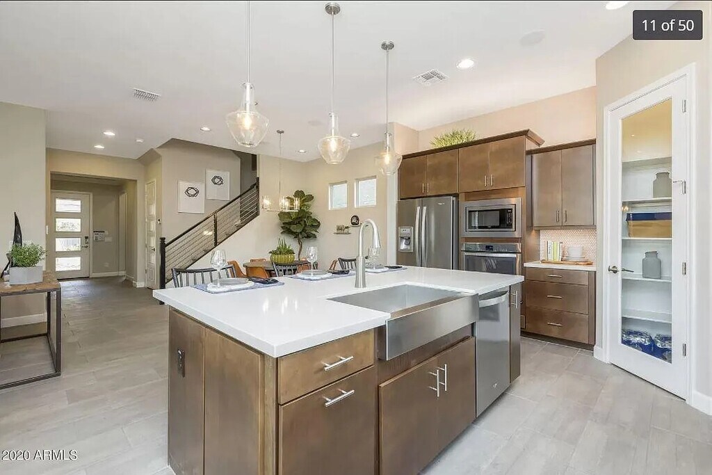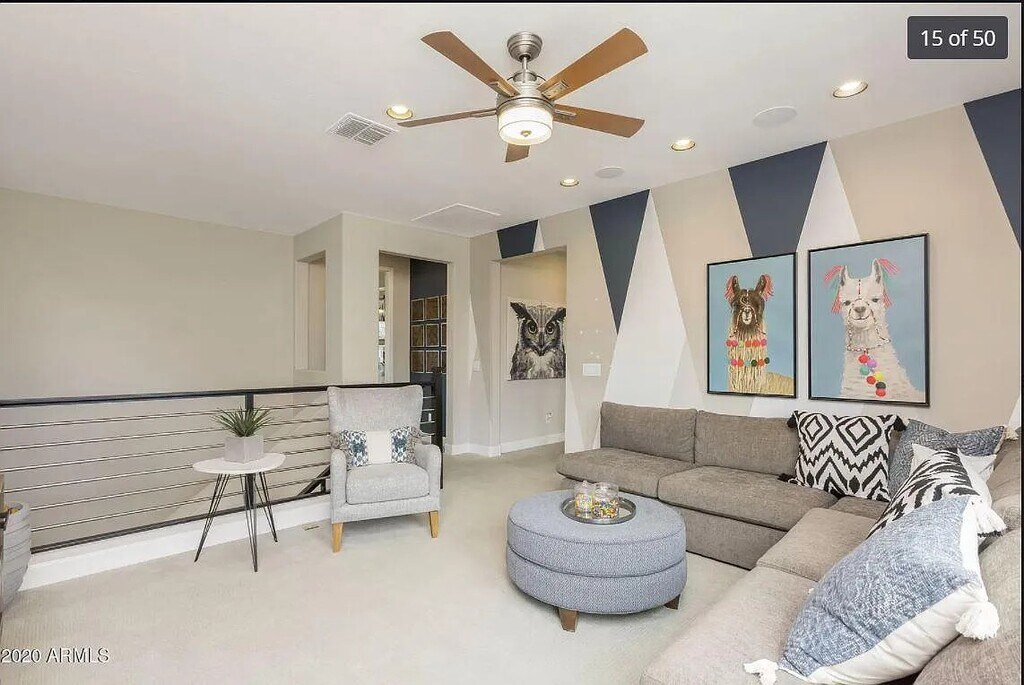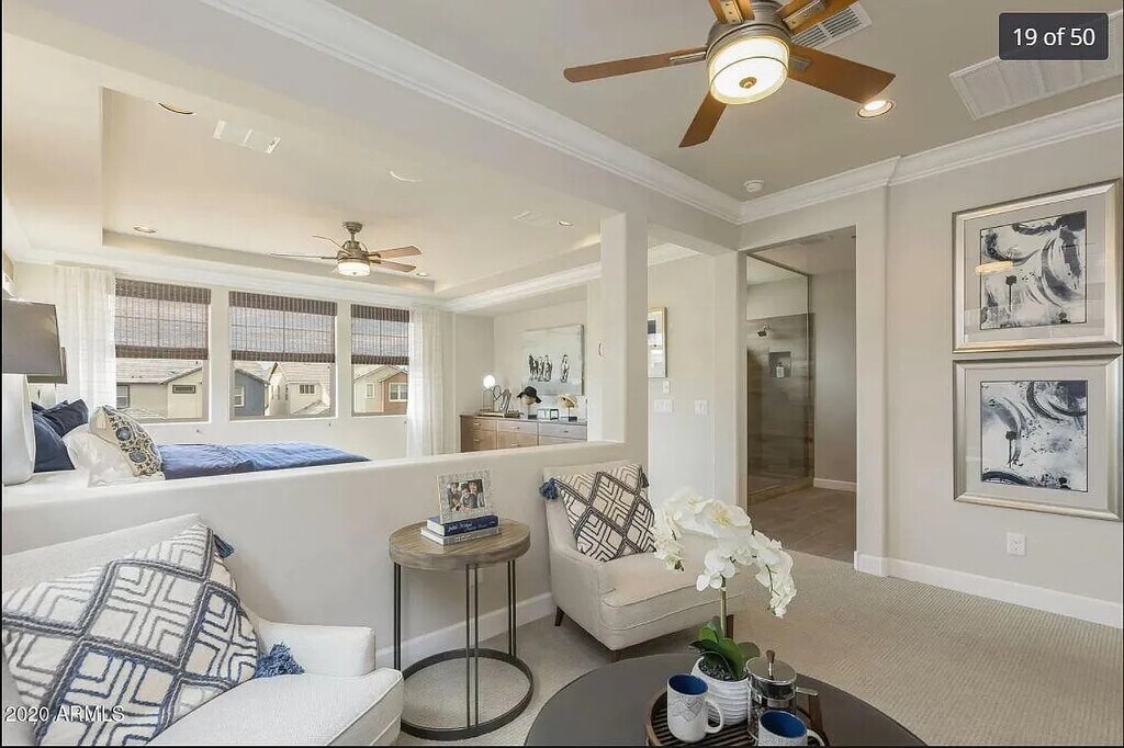This is un-furnished property. Highly upgraded former model home in the heart of Chandler with 4 bedrooms + loft & 3 baths in 2519 SqFt. Great room floor plan with one bedroom & bath on the main level, perfect for guests! The gourmet kitchen has a gas cooktop, stainless appliances, walk-in pantry & island with breakfast bar & pendant lighting. Sliding doors lead out from the great room to the wrap-around covered paver patio and backyard with artificial turf. The owner's suite is upstairs and features a coffered ceiling, sitting room, & en-suite bath with huge walk-in shower, dual sink vanity and walk-in closet with built-ins. The laundry room is conveniently located upstairs and has upper/lower cabinetry & sink. Other features include 8' interior doors, soft water loop, exterior gas stub for your BBQ, and fabulous community pool, spa and fitness center. See today! Renter is responsible for paying ultility fees such as water, electric, gas, internet, etc. Owner is responsible for HOA fee. Monthly rental is paid on the first day of the month.