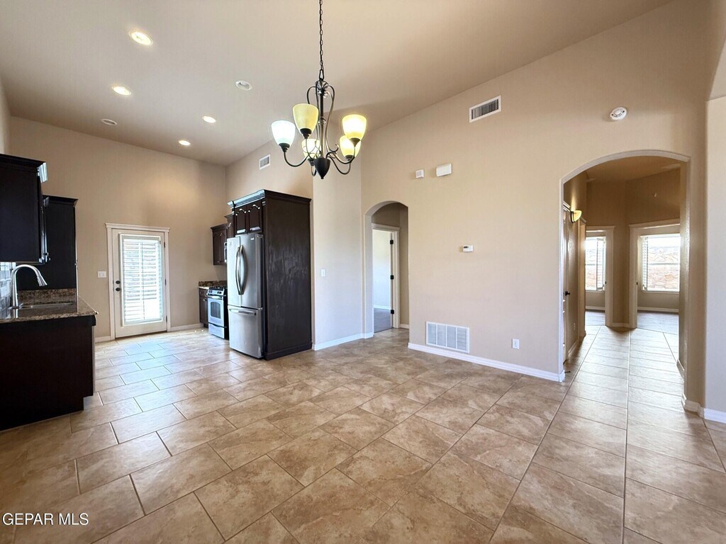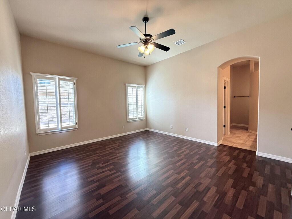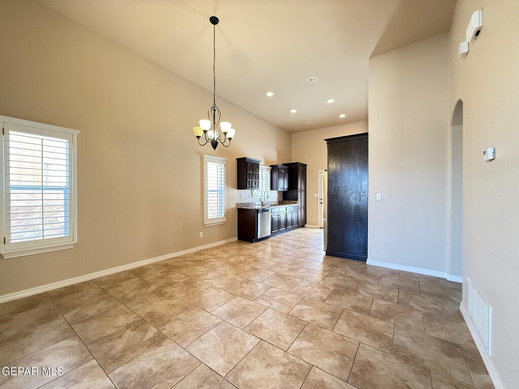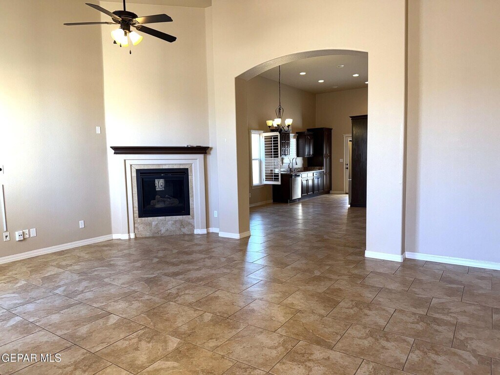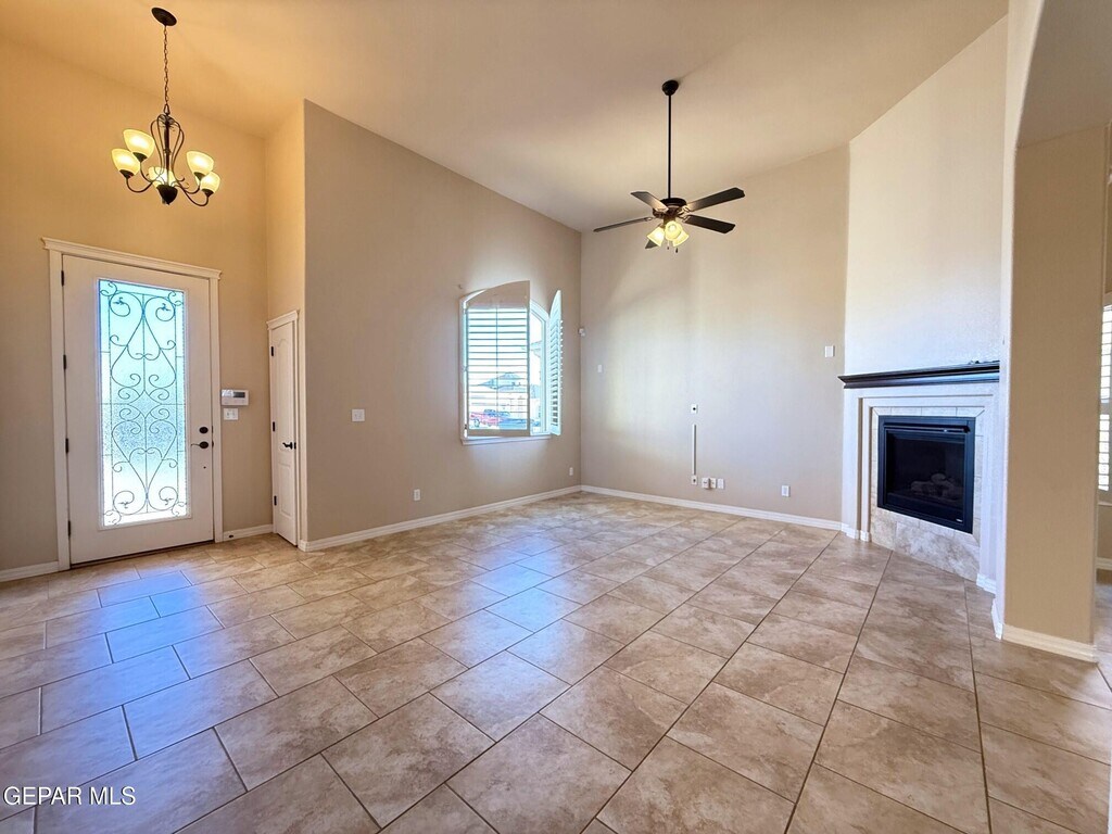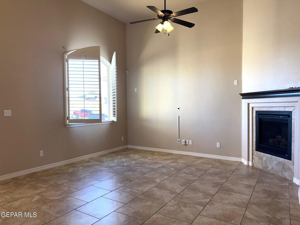 Very well cared for rental home located in northeast El Paso. This home is two blocks away from the large Sandstone Ranch city park with great walk-ways and a large children's playground. Also,located 15 miles (per Google maps) from the Fort Bliss,TX Consititution Gate. Welcome to a large living area with an inviting electric fireplace. The kitchen consists of all stainless steel appliances to include a dishwasher and a 3 drawer refrigerator. The primary room is zoned,and the additional two rooms are in a seperate hall next to a large full bathroom and utility room. Enjoy the low maintenance front a back yard landscaping with artificial turf and extended stamped cement slabs all around the house. All windows in this home have custom wood shutters. In the surrounding areas you will find major shopping,great restaurants,fast food restaurants and much more. Look no more,you just found your home sweet home.