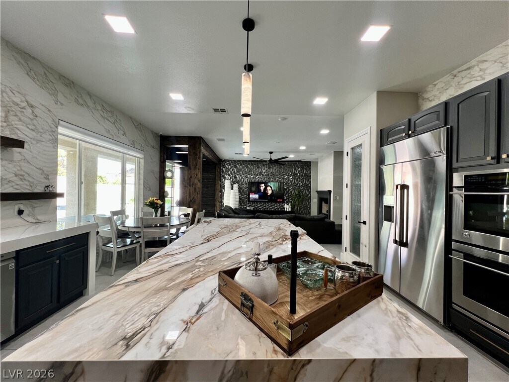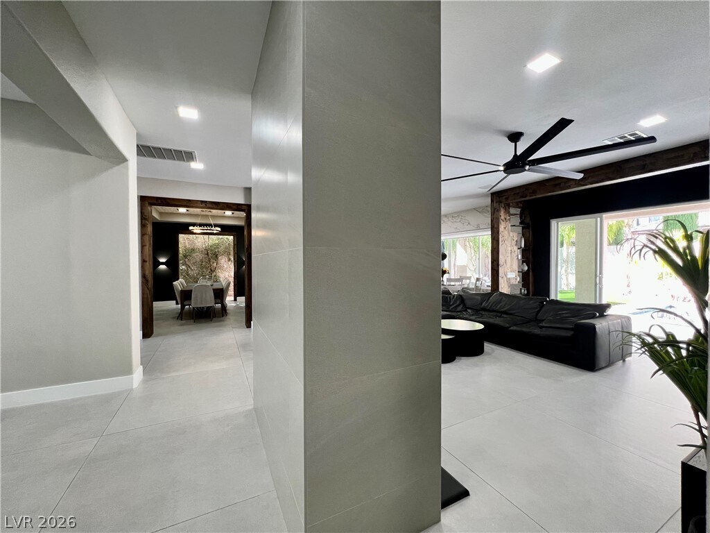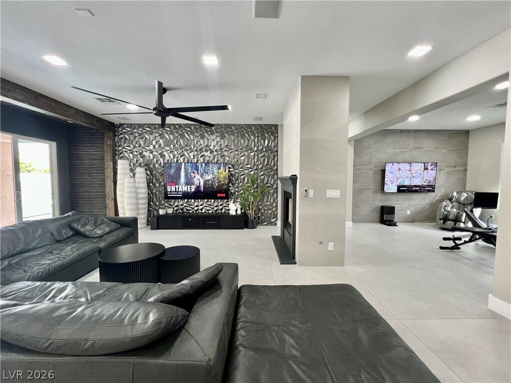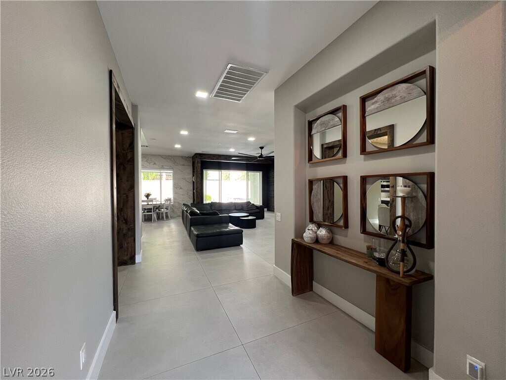 This beautifully renovated single-story home in a prestigious gated community in Summerlin offers the perfect blend of modern elegance and effortless comfort. Thoughtfully redesigned with a sleek, contemporary aesthetic, the home features an open-concept layout filled with natural light, clean lines, and high-end finishes throughout. The gourmet kitchen with, premium appliances, and a spacious island ideal for both everyday living and entertaining. Step into your private backyard oasis, complete with a sparkling pool and a stunning infinity-edge spa—perfect for relaxing evenings or hosting guests. Surrounded by low-maintenance landscaping and designed for privacy, this outdoor space feels like a luxury retreat. With its prime location in one of Summerlin’s most sought-after gated communities, this fully modernized home offers style, sophistication, and resort-style living all in one exceptional property.