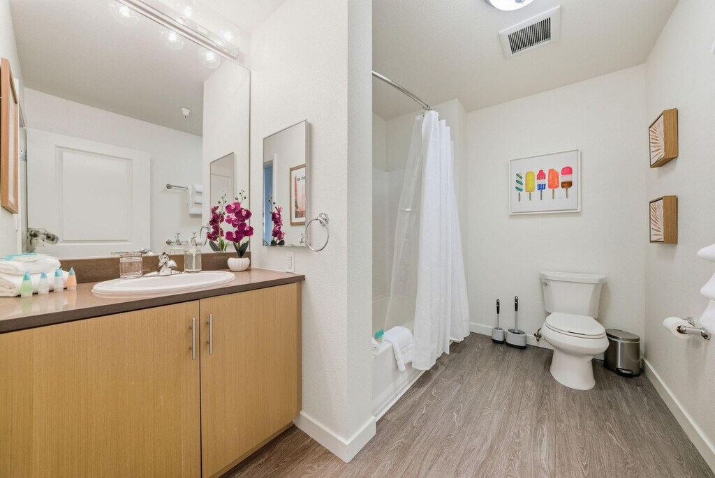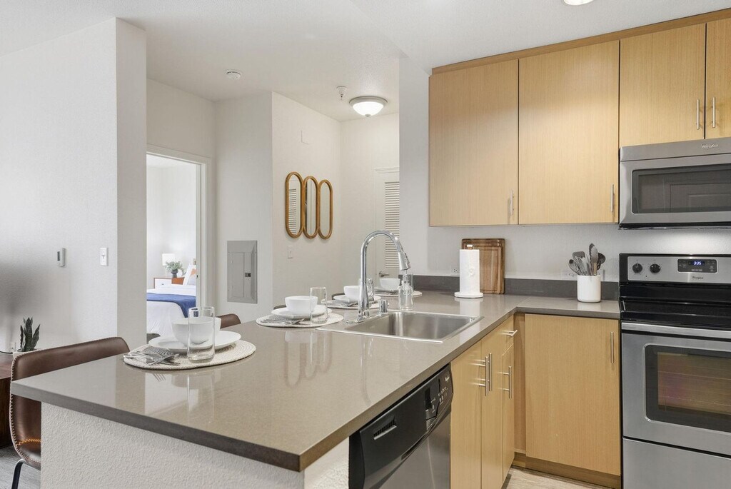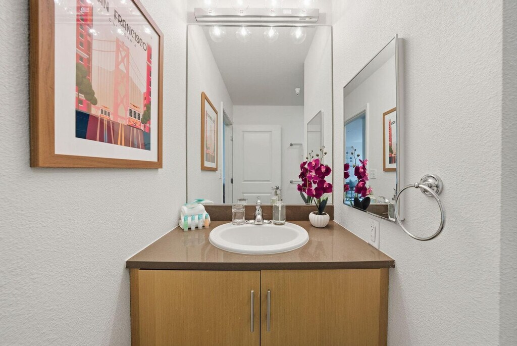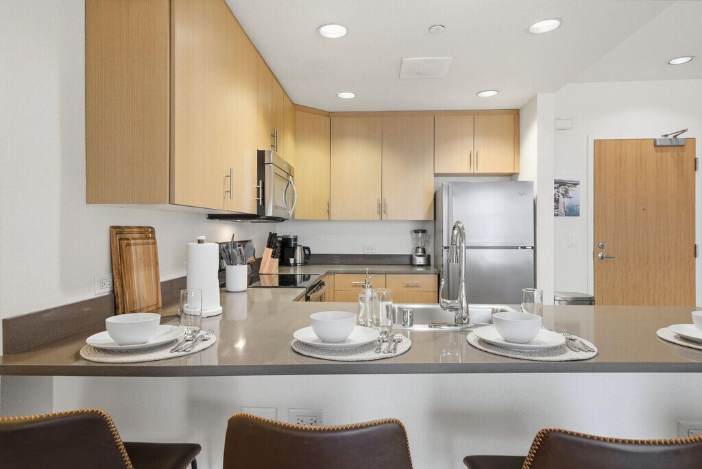 Experience high-rise luxury living in the heart of San Francisco’s vibrant Mission Bay neighborhood. This apartment at Venue at Mission Bay places you steps from Oracle Park, Chase Center, the UCSF campus, and the scenic waterfront, with easy access to Caltrain, Muni, I-280, and US-101. Surrounded by trendy cafes, restaurants, and entertainment, this modern community blends comfort, convenience, and sustainability in one of the city’s most sought-after locations. From top-tier building amenities to bright, modern living spaces, this fully furnished 1-bedroom apartment is custom-designed for the remote worker looking for a productive yet comfortable home base. The apartment features an open kitchen with quartz countertops, stainless steel appliances, hardwood-style flooring, oversized double-pane windows, high ceilings, and an in-home washer/dryer. Most importantly, it comes equipped with a full home office set-up and private high-speed internet. Reserved garage parking is available by request only and based on availability. Guest parking is available, and rates can be inquired about. The building also features a fitness center with cardio and strength equipment and free weights, a courtyard with outdoor seating, sundeck and BBQ areas, a clubhouse with kitchen, lounge and formal dining room, a conference room, complimentary Wi-Fi in common areas, concierge services, controlled access, package delivery lockers, and bicycle parking. On-site retail includes JOE & THE JUICE, and the building has a green building designation. Located in the heart of Mission Bay, this apartment offers easy access to Oracle Park, Chase Center, the UCSF campus, and the scenic waterfront. With convenient access to Caltrain, Muni, I-280, and US-101, you are well-connected to the rest of San Francisco. The neighborhood is bustling with trendy cafes, restaurants, and entertainment options, making it a prime location for city living. Internet speeds are not guaranteed and may fluctuate based on your computer model and the router location. Early check-in from 10am-3pm will incur a fee of $75, and early check-in before 10am will incur a fee of one full night's rent based on selected dates. Late check-out from 11am-3pm will incur a fee of $75, and late check-out after 3pm will incur a fee of one full night's rent based on selected dates. Late check-outs must be requested at least 48 hours in advance. Includes private high-speed internet, standing desk (Uplift), ergonomic work chair (Uplift), 34-inch ultra-wide monitor (Samsung), microphone (Blue Yeti), webcam (Logitech), computer speakers (Bose), LED streaming light, keyboard (Logitech), mouse (Logitech), laptop stand, and TOTU 16-in-1 Triple Display USB-C 3.1 Docking Station. A laptop computer is not included. [SI]