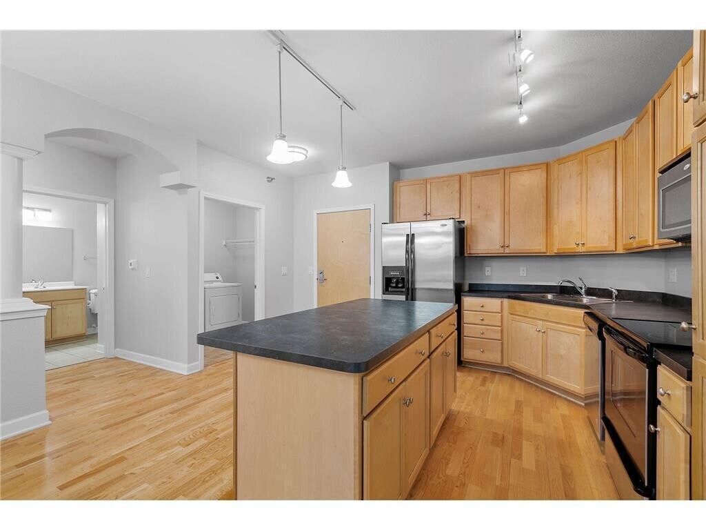 Welcome to WestMarke Condos! Ideally located near Ridgedale Center with quick access to Hwy 394 and 169, this community offers convenience to shopping, dining, and recreation. Inside, the kitchen boasts granite countertops, a spacious peninsula, center island, large pantry, and stainless steel appliances. Additional highlights include a cozy gas fireplace, in-unit laundry, solid 3-panel wood doors, expansive walk-in closets, and a primary suite with granite vanities, separate tub, and shower. Enjoy excellent storage throughout.