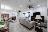 Designed for effortless living,this elegant newer-construction pool home is located in an established community,offering privacy,serenity,and optional golf club membership. Ideal for relocation,job transfers,or corporate lease,the 3-bedroom plus office/den,3-bath residence features volume ceilings and impact-resistant glass.Light-filled living spaces are complemented by a cabana bath,custom closets,and generous built-in storage. The expanded two-car garage includes a workbench,along with a separate workshop or golf-cart storage. Outdoor living features a game-friendly pool,summer kitchen,mature fruit trees,and full irrigationprofessionally maintained for ease and peace of mind. Just minutes from beaches,dining & entertainment. Also for sale and rent-to-own. MLS ID R11147536