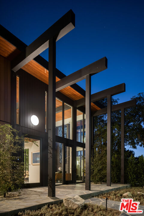 This period perfect FRYMAN CANYON 5 bed, 5 bath, MID-CENTURY POST AND BEAM renovation embodies the ethos of its time by staying true to its CLEAN LINES and careful simplicity with thoughtful re-imagining to cater to today's MODERN LIVING AND ENTERTAINING. This three year renovation was designed and carefully sourced by a high end design group with absolutely NO EXPENSE SPARED. This DWELL FEATURED home has floor to ceiling WALLS OF GLASS in an awe-inspiring living room with 20 FT. CEILINGS, complemented by a massive TWO-STORY MATTE BLACK GAS AND WOOD BURNING FIREPLACE and stunning slate floors that seamlessly extend to the outdoors, FUSING THE INDOOR AND OUTDOOR SPACE with ease. Experience a DEEP CONNECTION TO NATURE through multiple walls of glass, opening to WONDERFUL OUTDOOR SPACES showcasing EARTH, WATER AND FIRE ELEMENTS, with a new PEBBLE-TEC SALT WATER POOL/SPA, gas fire pit sitting area, WOOD DECK and PICTURESQUE MATURE LANDSCAPING, including JAPANESE MAPLE trees and blooming MAGNOLIAS providing complete privacy. An expansive GOURMET KITCHEN has a 25 FOOT QUARTZITE ISLAND, with MIELE appliances, and an island of slatted custom white-oak mill work cabinetry designed and CUSTOM MADE for the space. Slatted wood design accents grace the stunning staircase to the upstairs loft and bedrooms. WHITE OAK wide plank floors span the upstairs space, where ALL UPSTAIRS BEDROOMS ARE EN-SUITE, with bathrooms featured in HOUSE BEAUTIFUL and various other publications. The large primary suite has a balcony and mountain views, with a ROOM SIZED DRESSING ROOM with 8 custom-built OAK WARDROBE CLOSETS with additional built-in drawers offering plentiful enclosed wardrobe and shoe storage. The primary bathroom has a custom made dual vanity, Quartzite counters, TERRAZO FLOORS and a large walk-in shower and separate soaking tub. AUTOMATIC BLINDS ON REMOTES in most rooms allow light or privacy instantly. FULL SECURITY SYSTEM with cameras. TWO LAUNDRY ROOMS, one on each level. There are simply not enough words to describe this BREATHTAKING and emotional home. Furnishings are a fusion of restored Danish/European MCM imports and new Modern. If your clients are looking for an ULTRA-SEXY renovated lease that is NOT your cookie-cutter new construction, THIS IS IT. Just a couple blocks to serene HIKING TRAILS and close to all the studios, with easy access to Beverly Hills and Hollywood and top rated Carpenter School District. This VISUALLY CAPTIVATING home is UNRIVALED in today's rental market! MLS# 25592941
