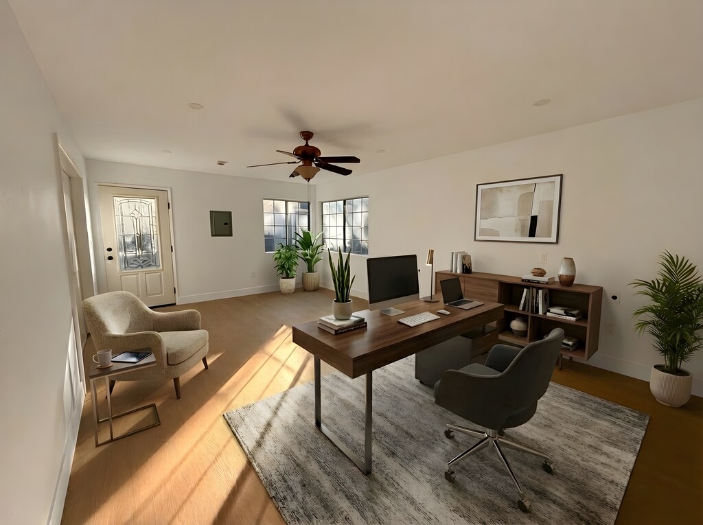 Welcome to 11559 Blix St., a charming and well-lit home situated in a desirable neighborhood. From the welcoming front porch to the sun-filled living room with large windows, this residence radiates warmth and character. Inside, elegant hardwood floors extend through the living room, the formal dining room adorned with wainscoting, and the cozy wood-paneled den featuring a fireplace. The galley-style kitchen includes a lovely breakfast nook and a nearby laundry room for added convenience. The spacious primary suite located at the rear of the home offers a tranquil retreat with an ensuited bath. The oversized two-car garage comes with a versatile bonus room, ideal for a craft area, home office, or gym.