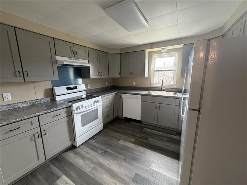 AVAILABLE NOW * LEFT SIDE only of duplex * Two Bedroom and One Full Bathroom * Beautifully remodeled throughout * Luxury vinyl plank flooring throughout first floor, wall to wall carpet on steps and in bedrooms, fresh paint, new light fixtures, appliances and more * Spacious living room at entry * Large dining room * Brand new fully equipped kitchen (electric cook top, dishwasher, refrigerator) with abundance of cabinets and cabinets, luxury vinyl plank flooring, new deep basin sink and faucet * Full bathroom with new flooring, cabinet, toilet, sink, fixtures * Upstairs are two good sized bedrooms with new light fans, carpeting and plenty of closet space * Full basement with plenty of storage * Laundry hook ups only with utility tub * Pets at owners discretion ONLY (additional fees/deposits) * Tenant responsible for all utilities, lawn maintenance and snow removal * Shared rear yard * Covered front porch * Two off street parking front of home * Convenient location to turnpike, Rt 28, shopping, eateries *