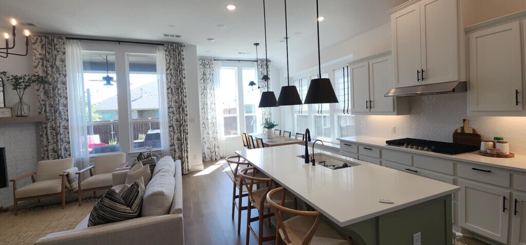 Experience modern comfort and resort-style living in this beautifully designed home located in the highly sought-after Wildflower Ranch community. (See interior photos for a closer look at all the custom upgrades and finishes!) Home Features: 3 bedrooms, 2 bathrooms with a spacious open-concept layout High ceilings that create an airy, inviting atmosphere Dedicated office perfect for remote work or study Media room ideal for movie nights and entertainment Elegant living areas with custom finishes throughout Hutch area designed for a coffee or wine bar setup Covered outdoor patio with epoxy flooring for stylish relaxation Epoxy-coated garage offering durability and a clean, polished finish Beautiful flower beds adding curb appeal and outdoor charm Primary suite with walk-in closet and private bath Modern kitchen with ample counter space and storage Community Amenities and Features: Resort-inspired lazy river and swimming pool Playgrounds and park areas for children and families Scenic walking and jogging trails Community pavilion and clubhouse for gatherings and events Convenient access to Highway 114 and I-35W Close to shopping, dining, and entertainment in Roanoke, Southlake, and Grapevine Approximately 30 minutes to Downtown Fort Worth and DFW Airport Located in Northwest ISD with an on-site elementary school This home combines modern upgrades, functional spaces, and resort-style amenities, making it the perfect choice for families and professionals seeking comfort, convenience, and a vibrant community lifestyle.