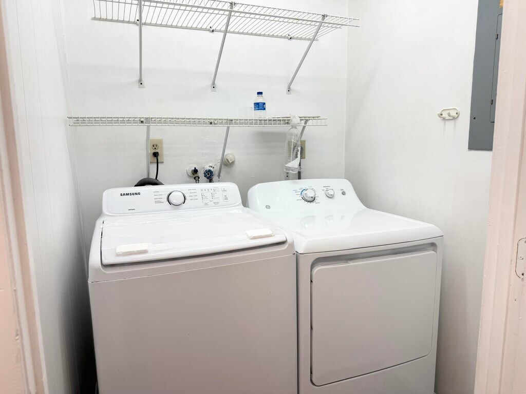 Jeanne GordonCharming single-family home with an open, bright interior. This 2-bedroom, 2-bathroom residence features an inviting eat-in kitchen complete with brand-new cabinetry, quartz countertops, and modern appliances. The primary bedroom offers ample storage, and the living area opens to a deck overlooking an oversized, fully fenced lot--ideal for privacy and outdoor enjoyment. Additional highlights include a washer and dryer located in the garage and accordion hurricane shutters for enhanced protection. Conveniently situated near shopping, dining, and Palm Beach International Airport, this home provides a blend of comfort and accessibility.