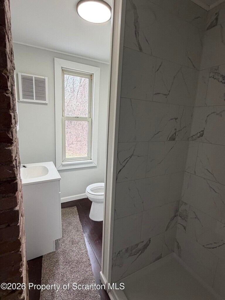 Recently redone 3-bedroom,1-bath side-by-side apartment features a spacious layout with modern updates throughout. Also included is a spacious walk-up attic for extra storage if needed. Situated in a great location,tenants have quick easy access to the back mountain,Wilkes-Barre and Wyoming Ave. Perfect for tenants looking for a move in ready rental in a desirable and convenient area.Tenants to be screened via RentSpree,application fee applies. Landlord pays water and sewer. First month and security due at move in.