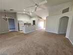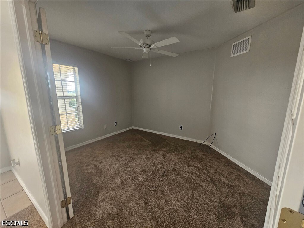Fresh paint and new carpeting this 3/2/2 + Den single family home is ready for move in!! Welcome to this freshly painted and newly carpeted 3-bedroom + den,2-bathroom single family home in the heart of Cape Coral,FL. This spacious residence features a screened lanai,perfect for enjoying the Florida weather. The open concept layout includes a den,ideal for a home office or additional living space. With 2 full bathrooms and an inside laundry room with washer/dryer hookups,convenience is key in this home. Located in a great central location,this property is available for annual rental now. Sorry,no pets allowed. Don't miss out on the opportunity to make this inviting house your new home. Monthly well service included 600+ Credit Score First/Security to move in