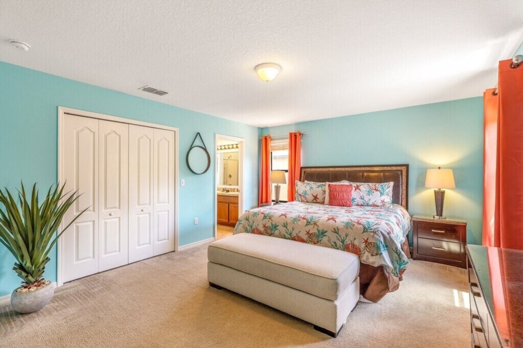 Discover Cypress Pointe Retreat, a luxurious 4-bedroom, 3.5-bathroom home located just minutes from Disney. This 2040 sq ft gem accommodates up to 10 guests with 2 king suites, 2 full beds, and 2 twin beds. Enjoy a private pool, BBQ, game room, and fully equipped kitchen, all nestled in a gated community. With serene décor, lush outdoor spaces, and top-notch amenities, it's the perfect place for families and groups seeking comfort, convenience, and relaxation. Step into inviting living spaces accented with serene blue and silver tones. The main living room features a plush sectional sofa and a flat-screen TV with Xbox One S for gaming or movie nights. The open-concept second living area boasts coastal decor and seamless access to the dining and kitchen spaces. The fully equipped kitchen includes modern appliances, abundant storage, and all the essentials for preparing meals. Gather around the elegant dining table for five under a beautiful chandelier, or enjoy casual meals at the breakfast bar with seating for four. Relax in the first-floor master king suite with a calming Zen ambiance, private patio views, and an en-suite bathroom with double vanities. Upstairs, the second master suite offers luxury with a spa-like bathroom featuring a soaking tub and shower. The additional bedrooms include a tropical-themed suite with two full beds and a playful twin bedroom, perfect for kids. Fun for all ages awaits in the Hollywood-themed game room, featuring pool, foosball, air hockey, and darts. Unwind on the private screened-in patio with lush greenery, a dining table for six, chaise lounges, and a curved south-facing pool. Fire up the BBQ for al fresco dining or simply soak in the tranquility of this tropical retreat. Pool heat is available for $30 per day with 24-hour advance notice required. BBQ rental is $50 if you bring your own propane or $80 with propane provided. Starter cleaning supplies are included and restocking is the guest's responsibility. Located minutes from Disney and close to Universal Studios, shopping outlets, and world-class golf courses, Cypress Pointe Retreat offers convenience and adventure for every traveler. No parties or events are allowed and quiet hours are from 10 PM to 8 AM. Self-check-in with a smart lock is available. Check-in is at 4 PM and check-out is at 10 AM, with flexibility upon request and additional fees. Trash must be disposed of daily in provided bins. A guest screening process will be conducted by a trusted partner to confirm your reservation and further instructions will be provided to complete this step. Includes a dedicated workspace and high-speed Wi-Fi. A laptop computer is not included. [SI]