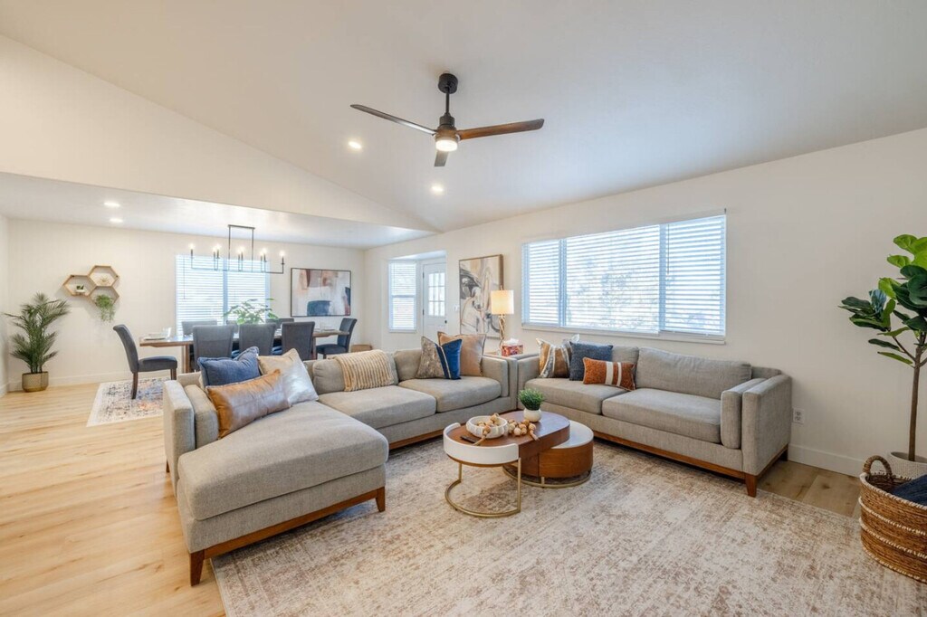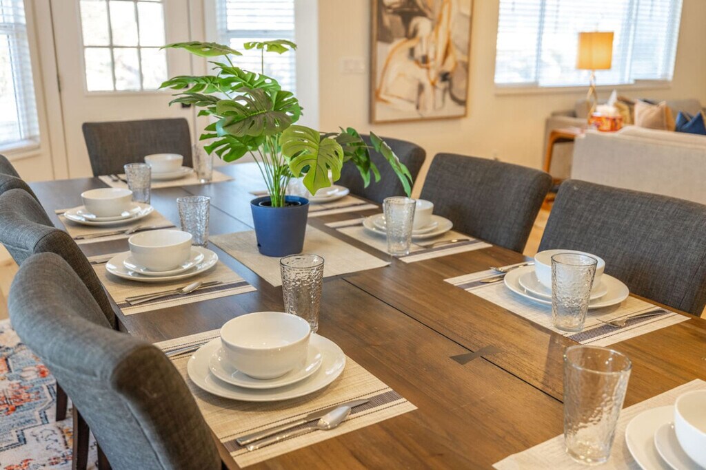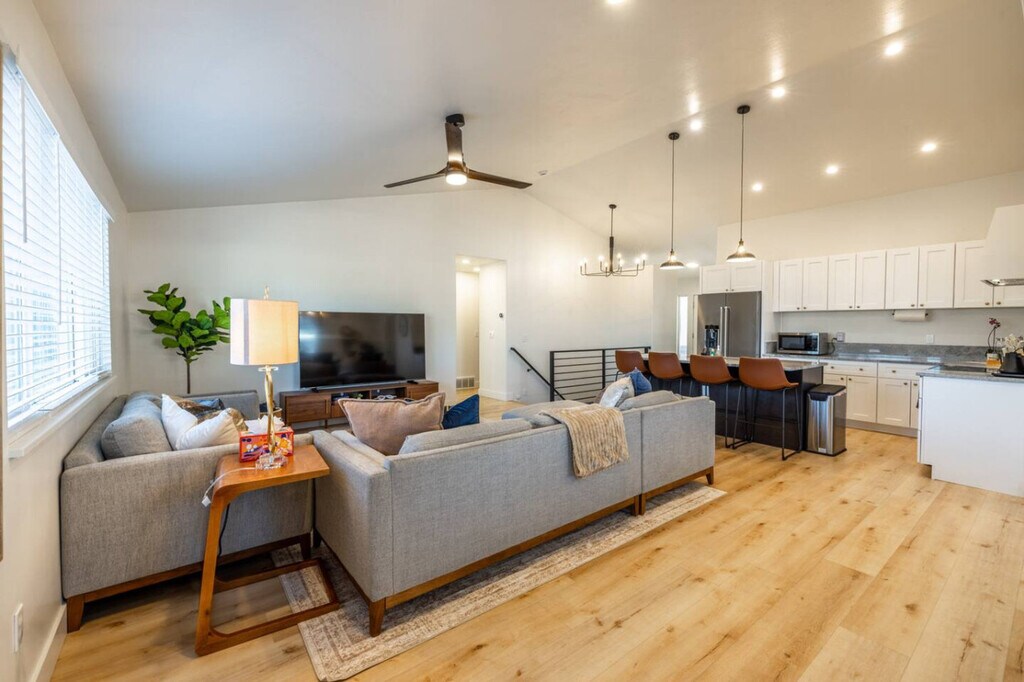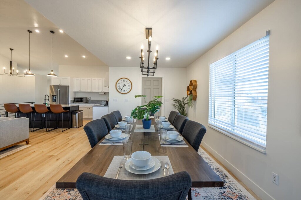 Feel at home in Meeting Place, a spacious and well-designed home built for group stays, family vacations, and ski trips. This home features multiple bedrooms and is thoughtfully designed for comfort, entertainment, and large groups. The main level features an open layout with a fully equipped kitchen, dining area, and comfortable living room, making it ideal for shared meals and conversation. Downstairs, this home truly shines as an entertainment hub with a private theatre room, poker table, mini golf area, and additional sleeping space, making it perfect for movie nights and game nights. Outside, unwind in the private backyard with a hot tub and fire pit. Two cars fit comfortably in the driveway, and a 2-car garage is available for guest use. Street parking is available for additional vehicles. If the property is pet friendly, pets are allowed at the cost of $10 per pet per day. Emotional support animals fall under this requirement as they do not have the same rights as service animals under the ADA. For unauthorized pets, a $250 fee will be assessed. With ample parking and a private backyard, Meeting Place is a great option for families, friends, and group stays looking for a comfortable and fun home base. Smoking or vaping is not allowed on the premises. A $200 per day fee will be assessed for each day of the reservation if it is found that guests have been smoking or vaping on the premises. Quiet hours begin at 10:00 PM each night and continue until sunrise. Moving furniture is not allowed. A $500 fee will be assessed if the cleaners have to move furniture to reset the property for the next guest. A $30 fee, per bin, will be assessed for unbagged garbage found in the bins. [SI]