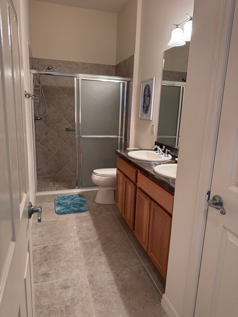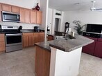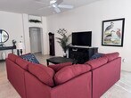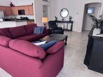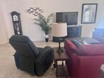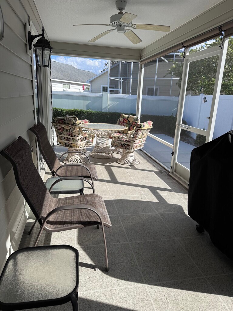 Location, location, location, this long-term rental home's location is conveniently located within a 5 minute walking distance of Lake Sumter Landing where you can enjoy music, dancing, dining, and shopping. Spanish Springs and Brownwood town squares are each about 20 minutes away by golf cart. Nearby recreation centers have numerous activities to meet every interest. Within a 15-minute cart ride, there are four 27-hole championship golf courses and ten executive courses. If you choose to stay home, take a refreshing dip in the heated Creekside Landing Adult pool within the complex. This home has been completely gone thru after the previous renter left. It has all new linens, some new and newer furniture, and not to mention that everything has been freshly cleaned inside and out. This wonderfully upgraded villa has an open-air kitchen, dining room and living room so that everyone can still be together no matter what the activity. The yard is low maintenance with zero-scaping, with plenty of landscaping and a pair of beautiful palm trees to greet your arrival. The huge and tastefully decorated Master Bedroom with plush carpet, a king size bed with very comfortable mattresses, a private bathroom with his and her sinks and a walk-in shower is just inside the bedroom entrance. A set of large sliders also provides quick access to the outside lanai so that you don't have to go thru the rest of the house. Also of course, there is a large walk-in closet for all of your clothing. In the same classic note, the pair of spare bedrooms for guests or perhaps office work, are well appointed with extremely comfortable queen beds, dressers, along with closets and again, the same plush carpet. The guest bathroom has a tub and shower combination. The massive private open back yard area is a lovely place to enjoy morning coffee, afternoon drinks, or a quiet evening. If the wind is blowing right, you can sometimes have private seats to listen to a little background music from the evening entertainment at Lake Sumter Landing. This home has neutral tile floors throughout the main living areas and bathrooms. In the kitchen you will love the stainless-steel appliances, faux-granite counter tops, and bar height stools to sit/eat at the raised counter bar. The indoor laundry room which is between the main living area and the garage, has of course your washer/dryer as well as a sink for all of your laundry needs. Very convenient to drop off anything dirty before coming into the main part of the home. Speaking of the garage, this garage is larger than most villa garages and easily fits your car (of any size) as well as a golf cart (not supplied). There is even a water purification system installed if you'd like to use it. The property is totally furnished and move-in ready. Just bring your clothes, your favorite foods and drinks, and your desire to enjoy The Villages Lifestyle to the fullest right next to Lake Sumter Landing. The Villas of Creekside Landing were originally built to house special guest of The Villages who were interested in possibly moving here. So, you know The Villages built them right to entice even the most finicky person that The Villages was the place to be, Enjoy all the advantages that Creekside Landing has to offer in this comfortable, clean, wonderful home. Rental Policy: Deposit/Security due within 7 days of booking. Owner is responsible for Property Taxes, Home Insurance, Water, Pest Control, Amenities, Trash, and Trimming Services. Resident IDs will be transferred to you for free. Renter is responsible for Electric, Gas and TV/Internet Services. Additionally, Renters Insurance is a must and proof to owner is required. If renter has a pet that is approved, there is a $500 Pet Fee. The Villages is an active Senior Community for residents 55yrs+. Young visitors are allowed for limited time periods. Family activities are provided.