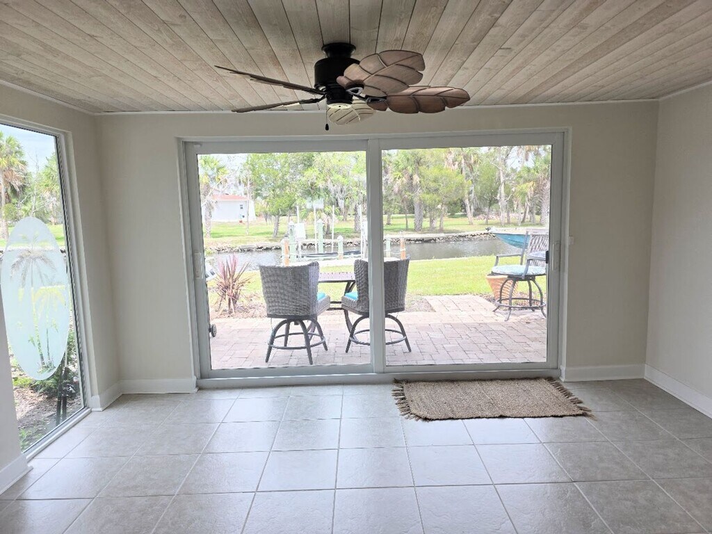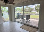 Great one bedroom, one full bath waterfront condo is now available. Unit has a dock and boatlift (boatlift use negotiable) overlooking the canal. Excellent sunset views from your patio! Tile floors throughout with a fully updated kitchen and bath. Unit has washer and dryer connections in the unit just off the bath. 3 closets in the bedroom are spacious for all your needs. There are frosted glass barn doors to separate the Florida room from the main living room. New sliders give you full views over the waterway allowing natural light to flow into the condo. Barstool seating at the kitchen allow for maximum use of space. Full stainless steel appliances and a new a/c system support a hassle free tenancy. The community has a large lap pool and tennis courts for tenants to enjoy within easy walking distance. Spectrum cable and internet is part of the community, all you need is your own equipment (from Spectrum). Electric is Duke Energy which is the only utility you will need to pay for. Can rent for 6 months to 1 year. No pets please.