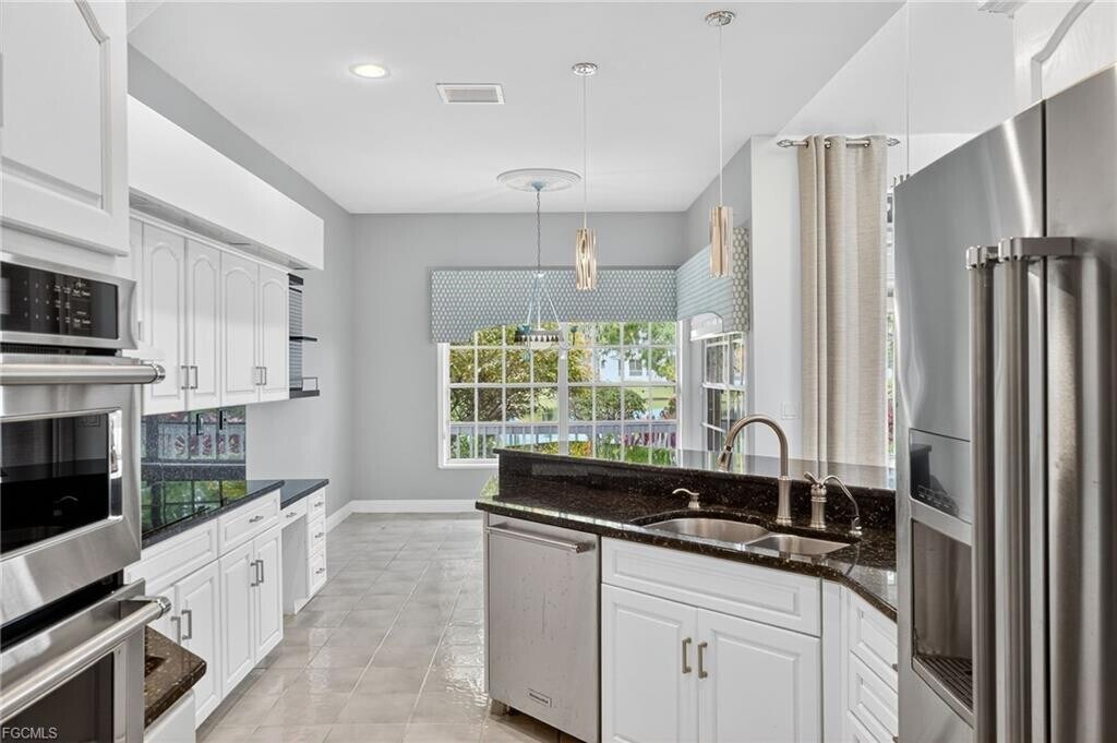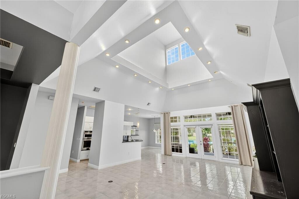 The Timbers is 1 of Ft Myers hidden secrets consisting of just 60 Custom Built Homes behind a Gate with its own Nature Slough Preserve that has a Boardwalk allowing residents to connect with the areas wildlife including an array of birds that fly over from the Six Mile Slough such as Bald Eagles, Roseate Spoonbills, Egrets, Great Blue Herons, White Ibis, and Hawks. Rarely do homes become available to rent in this established family neighborhood as this is the only available rental & it happens to be located on most of the most desirable lakefront lots & not only do you get a .30 lakefront lot, you also have a natural slough preserve directly across the street where you can watch the beautiful SWFL sunsets from the Large Front Porch, which comes with 2 Rocking Chairs, a Hanging Swing & a New PVC Trim Ceiling. The 2 stunning Mature Oaks are definitely eye catching and 1 even has a hanging tree swing. A New Dimensional Shingle Roof was added in 2023 along with New Gutters, the A/C System was upgraded in 2021 and the home has an auto Irrigation System, Large Rear Wooden Deck overlooking the Lake with Fruit Trees and is on City Water & Septic. Open the Black Farmhouse Screen Doors to enter inside and you immediately will notice the incredible Arhcitecural Cupola that is well over 20 Feet High in the Main Living Room, which has 6 windows that bring in a ton of additional Natural Light and it even has Recess Lights all around it and a Accent Light inside of it. It is one of the home’s most unique features. There is a mix of Tile and Laminate Floors thru out the Main Living, an array of oversized Windows bringing in a ton of natural light, updated Fans and Light Fixtures, Multiple French Doors out to the Rear Deck including from the Living Room, Primary Bedroom and 1 of the 2 Guest Beds. The Open Kitchen has White Cabinets with Black Granite Counters and Stainles Steel Appliances. There is a Formal Dining Room off of the Main Entry with an upgraded Chandelier. The Large Primary Bed has a Walk-in Closet and a whole wall of Glass overlooking the Lake and leads to the Primary Bath which has a Dual Sink Vanity, Soaking Tub and Walk in Tiled Shower. Both Guest Beds have 10FT ceilings with good closet space and share a Guest Bath with Separate Vanities and. Tub/Shower Combo. There is even a half bath off of the Front Entry adjacent to the Den, which could easily be a 4th Bedroom. The Timbers is truly something special, which you must see and experience to truly understand. Listed by: No Nonsense Real Estate PA Listing posted by Linda Castanon [SYNDID 4134005 12052025]