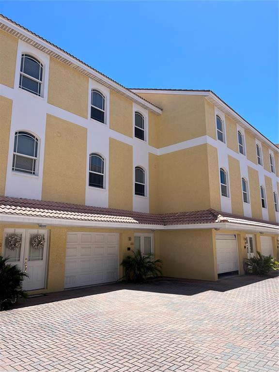 Stunning waterfront townhouse across from the beautiful Treasure Island beach with boat slip outside your patio. This townhouse has a private elevator from your extra large 2-car garage to both living floors. Features include a gourmet kitchen with granite counter tops,open to dining and living room. The master suite has a huge walk-in closet,granite vanity,dual sinks,soaking tub with separate shower and large linen closet with gorgeous plantation shutters to your large balcony facing east for the sunrise! Each guest suite has private baths,with one room located on the main living level. Laundry is located conveniently on the master bedroom level. Ground level patio with easy access to the boat slip. Max occupancy of 4. MLS# TB8359120