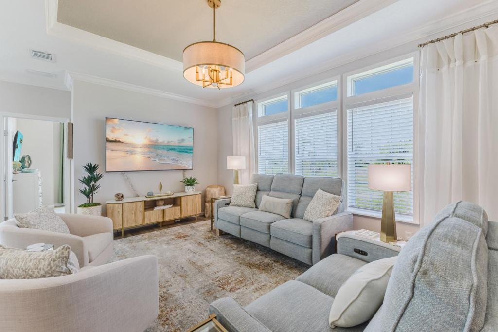 Come and make this stunning BRAND NEW home yours for the season! Located in one of Fort Myers most premier Luxury Age-Qualified communities, Osprey Bay. Not only do you get to be some of the first to take advantage of Osprey Bay's vibrant social events, amenities and activities but you are also mere minutes to Fort Myers Beach, Sanibel and Captiva. Experience the epitome of Luxury SWFL Living in this 3 bedroom and 2 bathroom home. No expense has been spared in the preparation for our new guests. This property is stunning and shows as well as the pictures. With a large open concept great room, completely stocked for all of your cooking and dining needs, you'll be able to host friends and neighbors for get togethers and dinners easily. A spacious living room with reclining chairs and couch, smart tv and an array of books and games to choose from can make keeping entertained a breeze. Sit out front on the covered porch with your coffee to enjoy the company of fellow travelers and residents. A large primary suite offers a large walk in closet, double vanity in the bathroom and a HUGE walk-in shower. Two well appointed guest rooms, one with a king bed and another with two twins, make it easy for kids and grandkids to join for short stays as well. Full in-unit laundry makes getting chores and clothes done easy. A small storage area houses convenient necessities like beach chairs and a buggy to make transporting things on the sand simple. Come and book your destination vacation today. Come and visit our Gulf Beaches during the most beautiful time of the year and take advantage of quick and easy access to the beaches during the summer! Minimum stay 30 days. Pets with approval. At least one guest must be 55 years or older! Check Out the 3D TOUR Rates Vary for Season and Off Season: $2,450 - Off Season Rate May - December (plus taxes and fees) $5,500 - Season Rate January - April (plus taxes and fees)