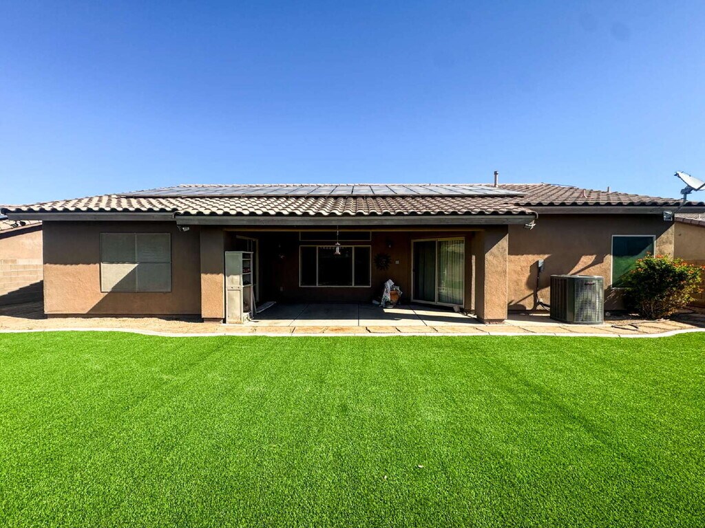 Welcome to this spacious 4-bedroom, 2-bath home offering over 2,000 sq ft of comfortable living space. Featuring tile flooring throughout, the home includes a well-appointed kitchen with a dual sink, granite countertops, and ample cabinet storage. Enjoy energy efficiency with a 38-panel solar system, along with a brand new low-maintenance turf backyard and covered patio—perfect for relaxing or entertaining. Ideally located in a desirable Yuma neighborhood with convenient access to outdoor recreation and local amenities. Property Features: • 4 bedrooms / 2 bathrooms • Over 2,000 sq. ft. • Ample kitchen cabinets • Stainless Appliances • Primary bedroom with walk-in closet • Primary bathroom is tiled w/ a tub • Washer and Dryer • Nest System • Solar System and Services Included • Brand New Turf Backyard