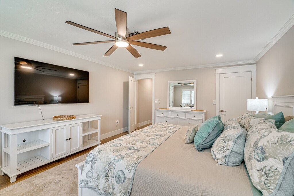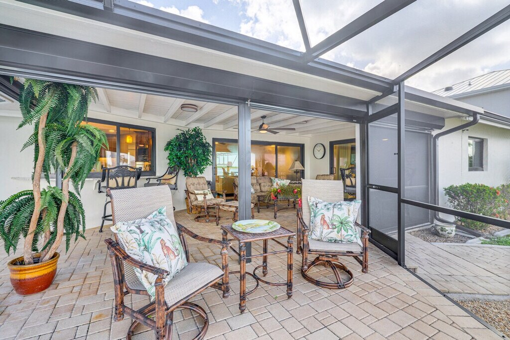 The advertised rate of $10,264/month is the lowest available price, based on a 30 day(s) stay with a move-in date of March 2, 2026. Rates vary depending on the duration of stay, season, and other parameters. For exact pricing and additional pricing components, please visit our website and enter your desired move-in and move-out dates. The rate is applicable when billed upfront; it can be higher if billed in multiple payments. Feel at home in this waterfront vacation rental in Matlacha. This single-story home offers 2-bedrooms and 2-bathrooms and backs up to Matlacha Aquatic Preserve, where you can watch dolphins and manatees, or fish, crab, and watch the sunset from the dock. A step is required to enter. This recently renovated (2025) home features a lanai, a heated pool (open year-round), lounge seating, an outdoor dining area and bar, and a gas grill. Enjoy the convenience of a private dock for fishing and crabbing on-site, as well as sunset views. For recreation, there are 3 bikes and 2 kayaks available. Inside, you'll find 4 smart TVs, an electric fireplace, picture windows, a dining table, a breakfast bar, and an en-suite bathroom. The kitchen is equipped with a stove/oven, refrigerator, dishwasher, microwave, air fryer, Keurig coffee maker, electric tea kettle, dishware/flatware, cooking basics, trash bags, and paper towels. Additional amenities include free Wi-Fi, central air conditioning/heat, ceiling fans, linens/towels, and a washer/dryer. Pets are welcome with a $100 fee, plus fees and taxes, for one dog only. You’ll be a short boat ride from Boca Grande, Sanibel, North Captiva, and Cayo Costa islands. Walk or bike to the village for live music, dining, and shopping. Smoking and vaping are prohibited. Events, parties, and large gatherings are not allowed. There are 4 exterior security cameras: 1 camera is part of a Ring doorbell device facing the front entrance, 1 camera is located at the back of the home facing the dock, 1 camera is located on the corner of the garage facing the driveway and street, and 1 camera is located in the lanai facing the pool and waterway. The cameras are outward facing and do not look into interior spaces. The cameras are activated by motion and will record video and sound while guests are in residence. Guests will have access to the entire property via lockbox. [SI]