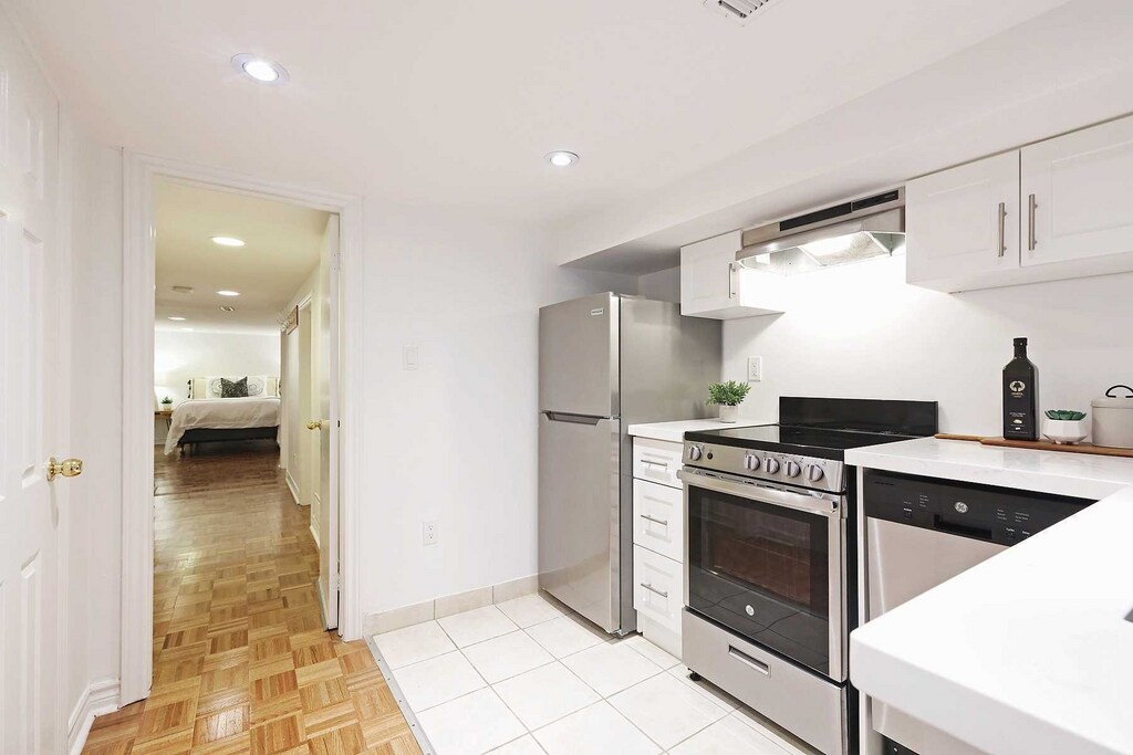 Unit: Newly renovated 1-bedroom + den basement apartment in Toronto’s Greektown, just minutes from Pape Station. The unit features a private entrance, full kitchen (fridge, stove, dishwasher), in-suite washer/dryer, and a spacious bedroom with ample storage. The den works well as a home office, study, or hobby space. Natural light from the bedroom window and front door also brighten the space Best Fit: Perfect for someone seeking a comfortable space to themselves in a walkable, transit-friendly neighbourhood. We’re Looking For: A tidy, quiet, non-smoking tenant who appreciates a calm home environment. A family lives on the main floor, so this isn’t the right fit for those looking to host late night ragers. Inside the Unit: The open-concept layout maximizes space for both relaxation and entertaining. Modern finishes and in-suite laundry make day-to-day living simple and efficient. Natural light from the bedroom window and front entrance brightens the space, making it feel welcoming and comfortable. Note: utilities are an additional fee on top of the monthly rent. About the Area: Just a short walk to both Pape and Donlands stations, with TTC buses nearby for extra convenience. Steps from Danforth Avenue’s restaurants, cafés, shops, and everyday essentials. Beautiful Withrow Park and other green spaces are within walking distance, making it easy to balance city living with outdoor time. About the Area: Located on a quiet residential street, the unit is just a 6-minute walk to both Pape and Donlands subway stations, making commuting fast and simple. The Danforth also features dedicated bike lanes, making it easy to get around by bike or on foot. With TTC buses on both Pape and Donlands, you’ll have multiple transit options at your doorstep. The neighbourhood sits in the heart of Greektown, with its wide range of restaurants, cafés, and bars, as well as essentials like grocery stores, pharmacies, and shopping within walking distance. For outdoor space, Withrow Park is just a 10-minute walk, along with several other nearby green spaces to enjoy.
