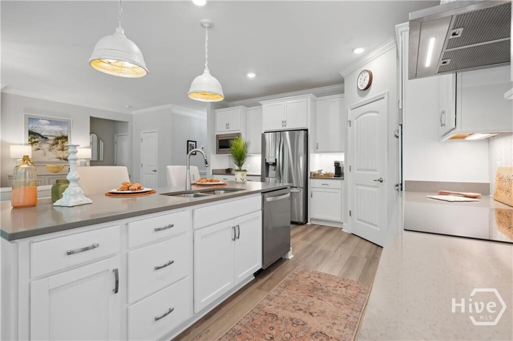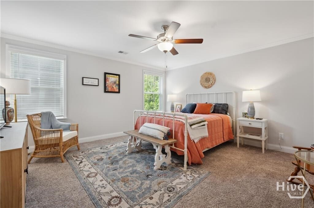 A charming single-family home located in the heart of Pooler. This spacious property offers a comfortable and modern living space perfect for both families or individuals. Boasting a stylish exterior with a well-maintained lawn and landscaping. Inside,the home features a bright and airy open floor plan,with large windows that flood the space with natural light. The living and dining area is ideal for entertaining guests or relaxing with loved ones. The kitchen is complete with sleek countertops,ample cabinet space,and modern appliances. A breakfast bar offers additional seating and is perfect for casual dining or morning coffee. The home offers four spacious bedrooms,including a luxurious Owner's suite featuring a double vanity. Second downstairs bedroom can also entertain a second Owner’s suite.This home's patio area is ideal for outdoor entertaining or enjoying the Georgia sunshine. Located in a desirable neighborhood close to shopping,dining,and entertainment options.