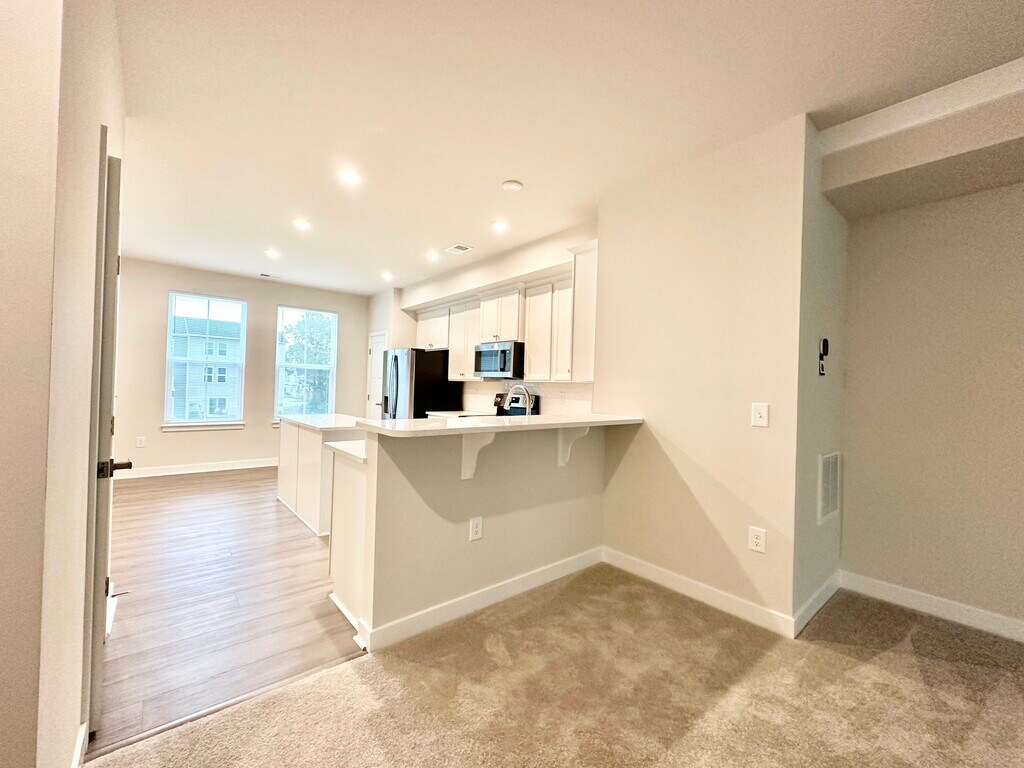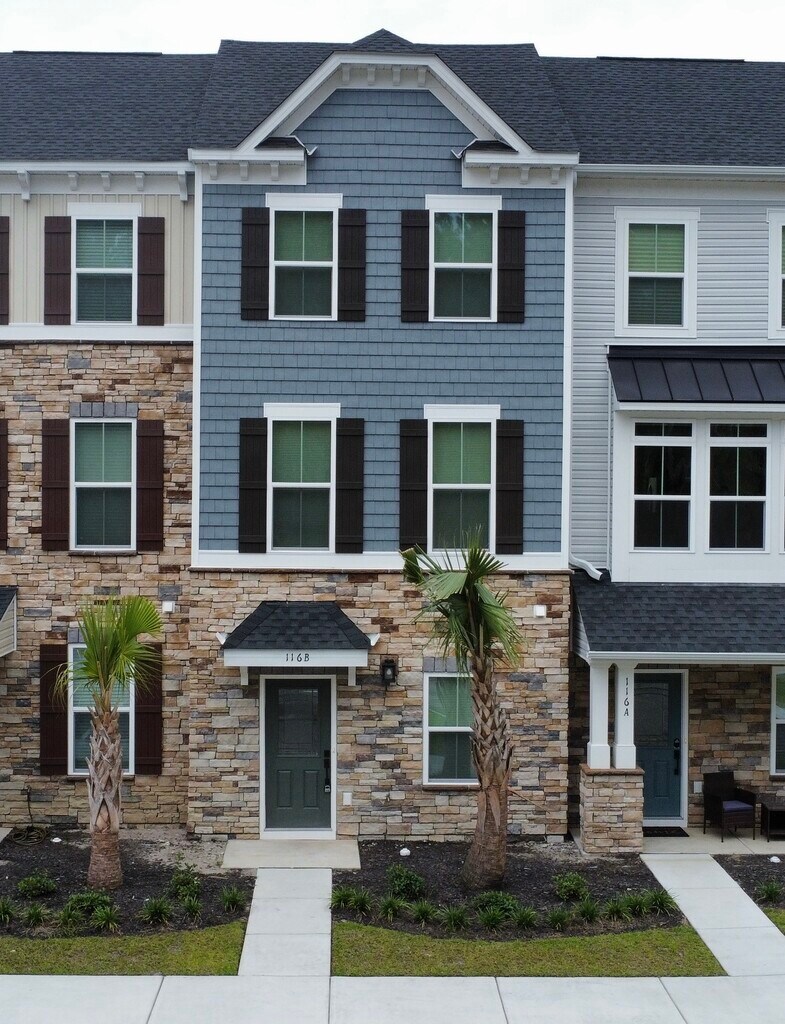 Discover your perfect home! This stunning new townhome, opposite Arrowhead Golf Course, features 3 bedrooms, 3.5 bathrooms, 1884 sq ft, and 2 living areas. The first floor includes a large recreation room with a sliding glass door to the backyard, a cozy bedroom, and a full bath. The main level boasts an open floor plan with a living room, kitchen, dining area, and a half-bath. The modern kitchen offers white cabinets, quartz countertops, stainless steel hardware, and appliances. The third floor has two bedrooms and two full bathrooms, with the primary suite featuring a tray ceiling and a private bath with a step-in shower. Located close to Tanger Outlets, Coastal Grand Mall, and the beach, this home offers both convenience and comfort. Schedule a viewing today!
