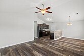 This charming 3-bedroom, 2-bath home is tucked away on a quiet cul-de-sac — the perfect setting for safe play and peaceful living. From the moment you step inside, you’ll appreciate the open-concept layout, highlighted by tall ceilings and beautiful luxury vinyl plank flooring throughout the entire home. That's right- NO carpet! The spacious living area seamlessly connects the dining space, galley-style kitchen, and living room — ideal for both everyday living and entertaining. The kitchen features rich mahogany-colored cabinetry, sleek black appliances, and a convenient hallway closet just off the kitchen that can easily serve as a pantry. The laundry closet is centrally located in the hallway for easy access. (Washer and dryer are included as a convenience but will not be maintained by the owner.) The thoughtfully designed split floor plan offers a private primary suite complete with a walk-in closet and a full en-suite bath featuring a double-sink vanity and a large garden tub/shower combo. Two additional bedrooms are generously sized and offer spacious double-door closets. Step outside to enjoy the screened-in porch overlooking a large, fenced backyard with a firepit — perfect for relaxing evenings or entertaining guests. Pet lovers will appreciate the two doggy doors: one leading from the hallway to the screened porch and another to the backyard. Additional highlights include a one-car attached garage and driveway parking for up to three vehicles. Don’t miss your opportunity to call this one home! **Pet friendly with approval and monthly pet rent!** We strive to provide an experience that is cost-effective and convenient. That’s why we provide a Resident Benefits Package (RBP) to address common headaches for our residents. Our program handles insurance, identity protection, pest control, air filter changes, utility set up, credit building, rent rewards, group rate internet, and more at a rate of $53.95/month or $68.95/month with pest control, plus $65.00 for group rate internet/month, added to every property as a required program. More details upon application. Most homes come with high speed internet up to 1 Gig at a special group rate, with premium support and setup to get you connected fast at move-on.