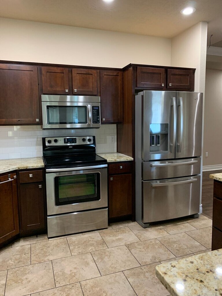 3 bedroom 2 bath home. All electric. Stainless steel appliances. Granite countertops with custom cabinets. Eat in kitchen. Double tiered island with sink and dishwasher. Large master bath with master bath. Master bath has double vanity jet tub and separate walk in shower. Nice backyard with a built in firepit and storage shed. Fenced in back yard. Built in 2012. Over 1700 sq ft of space. 2 car garage. Pets welcome-doggie door to the backyard. $250 non-refundable pet deposit with $25 per pet per month pet rent.