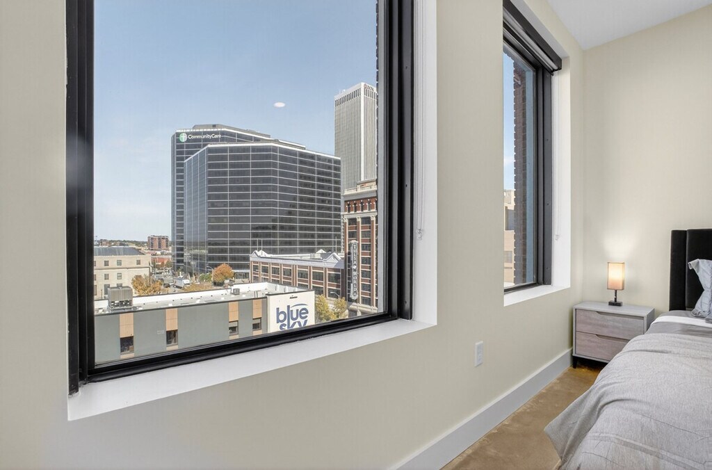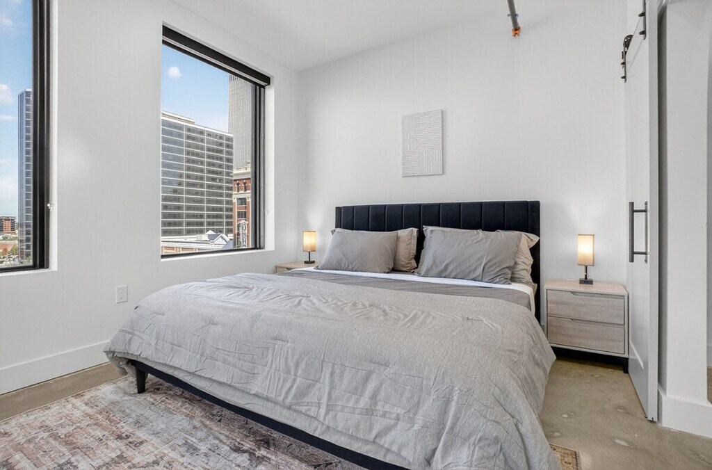 Feel at home in this modern 2-bedroom industrial loft in the historic Beacon Building, just one block from the BOK Centre. Enjoy skyline views and 12-foot ceilings in this spacious apartment. The loft features 12-foot ceilings, large windows, and exposed steel accents, creating an airy, industrial-modern vibe. The open and bright living area includes a Smart TV and fast Wi-Fi. The kitchen is fully equipped for cooking, and a combo washer/dryer is available for your convenience. Central A/C and heat are included, along with every amenity for a comfortable, extended stay. Paid parking is available for $10 per night on weekdays and $15 per night on weekends. Secure, paid open-lot parking is available right next to the building. You're centrally located in Downtown Tulsa’s Entertainment District, one block from the BOK Center. Cain’s Ballroom is about 13 minutes walking or 3–4 minutes driving, and the Cox Convention Center is 3 blocks away. The Tulsa Performing Arts Center is an 8-minute walk. Nearby dining favorites include The Vault, Juniper, Elgin Park Brewery, Fassler Hall, and Antoinette Baking Co. Cultural highlights close by include Philbrook Downtown, Woody Guthrie Center, and Greenwood Rising Museum. Guthrie Green, with live events and markets, is a 10-minute walk, and The Gathering Place, an award-winning riverside park, is a 10-minute drive. All guests are required to complete a mandatory identity verification after booking, including full name, residential address, email address, and phone number. Failure to complete the verification may result in cancellation of the booking. A $150 penalty will be imposed if the camera is disconnected, tampered with, or relocated from its original position. [SI]