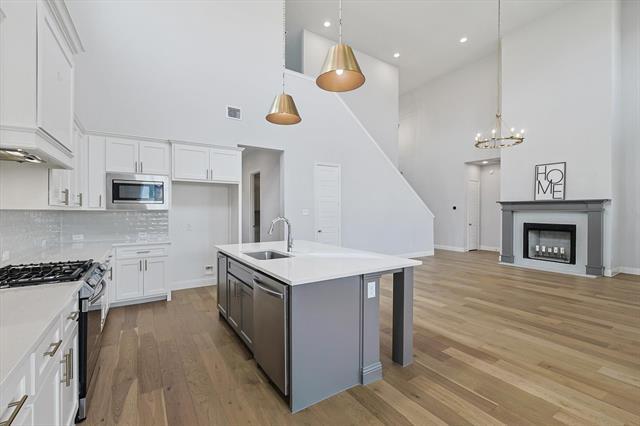 BETTER THAN NEW MODERN FARMHOUSE-STYLE home in acclaimed Aledo ISD just outside of Fort Worth and within walking distance to shopping and dining at the Shops of Willow Park. Round out summer in the amenity-rich boutique enclave neighborhood The Reserves at Trinity. Amenity center features walking trails, pool, bocce ball court, tennis court, pickle ball, outdoor grills, and cabanas. Fresh modern lines compliment this lovely home featuring light wood flooring, soaring 20-foot ceilings with tons of natural light, and contemporary design features throughout. The sparkling chef's kitchen hosts a large island, quartz countertops, gas range and tons of storage. Two downstairs bedrooms include the master suite with elegant ensuite bath and a spacious guest room with it's own dedicated bath just outside. Upstairs includes a large game room, two secondary bedrooms and a bath. Enjoy the private backyard with large patio. OVERSIZED 2-car garage with plenty of room for additional storage.