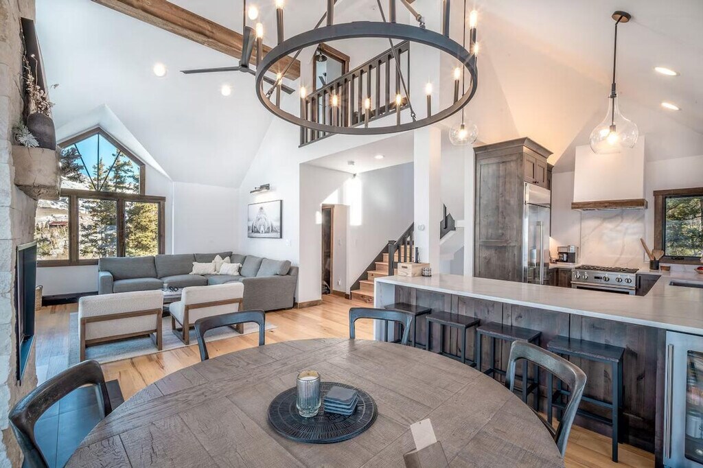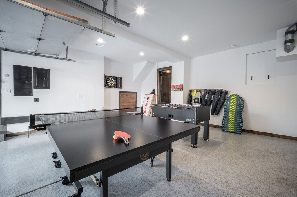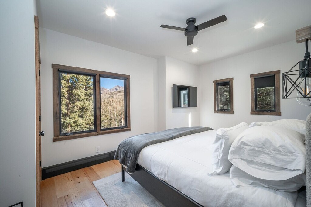 Experience the tranquility of this private and quiet single-family home, nestled at 9,870 feet elevation in the heart of the San Juan Mountains. Located in Mountain Village, this charming and sophisticated home offers direct ski-in and ski-out access to the Lower Sundance ski run, just steps away. Enjoy the convenience of a world-class ski resort with stunning vistas and cultural experiences, all connected by a gondola to picturesque Telluride. The home features four bedrooms, including three king-size beds and a custom-built bunk room with four twin beds, each equipped with outlets and lights. The upper floor boasts a king bed with an en-suite double vanity bathroom, soaking tub, and walk-in steam shower. The main floor offers a cozy living room with a gas fireplace, a fully equipped kitchen, and access to back decks with a fire-pit and a large hot tub. The lower floor includes a media room with a 75" TV and Bose sound bar, perfect for movie nights or gaming. The entry level houses a private heated garage with game tables, a ski locker room, and a full spectrum infrared sauna and small gym. The property includes a 2-car private heated garage, with an EV outlet for charging electric vehicles. Enjoy the outdoor fire-pit, a large hot tub, and a variety of games including ping-pong, foosball, and corn-hole. For coffee lovers, the kitchen is equipped with a Nespresso Original with milk frother and a Keurig-K Duo. A pack n' play and high chair are available for families traveling with young children. Mountain Village offers a unique blend of charm and sophistication, with easy access to the Market Plaza and Mountain Village core via a free gondola service. The gondola operates daily, connecting you to Telluride and providing a scenic journey through the mountains. Additionally, the "Dial-A-Ride" service offers convenient transportation around Mountain Village. The property is non-smoking and does not allow parties. Check-in and check-out times are flexible, with tech-enabled access for a seamless experience. The upper floor includes a desk and laser printer, providing a private space to work if needed. The home is equipped with smart televisions with cable channels in the living room, media room, gym, and all bedrooms, ensuring you stay connected and entertained. [SI]