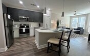 Feel at home in this luxury apartment located in the heart of Pill Hill in Sandy Springs, GA. This apartment features quartz kitchen countertops, a kitchen breakfast bar, energy-efficient stainless steel appliances, modern cabinetry with designer hardware and tile backsplash, undermount sinks with gooseneck faucets, smart thermostats, fiber internet, in-home full-size washer and dryer sets, wood-style flooring, built-in bookshelves, granite bathroom countertops, linen closets, deep-soaking garden-style bathtubs, walk-in glass-door showers, spacious walk-in closets, modern lighting, and living room and bedroom ceiling fans. Personal patios and balconies are also included. Amenities include a resort-style pool, gas grilling stations, a fitness center with Peloton® Bikes, and Fitness On Demand. You'll have direct access to some of Atlanta’s best shopping, dining, and entertainment options. The apartment offers walkability to MARTA Medical Center Station and major employers like Northside Hospital and CHOA’s Scottish Rite Hospital, making your everyday commute a breeze.