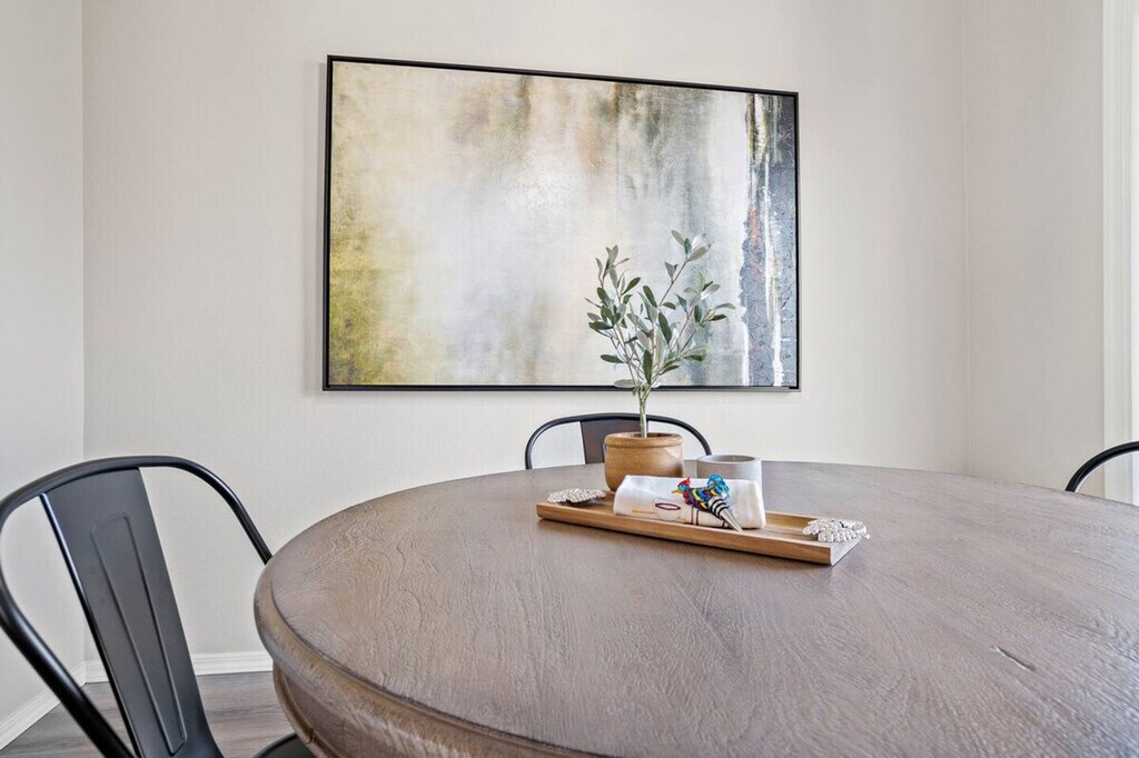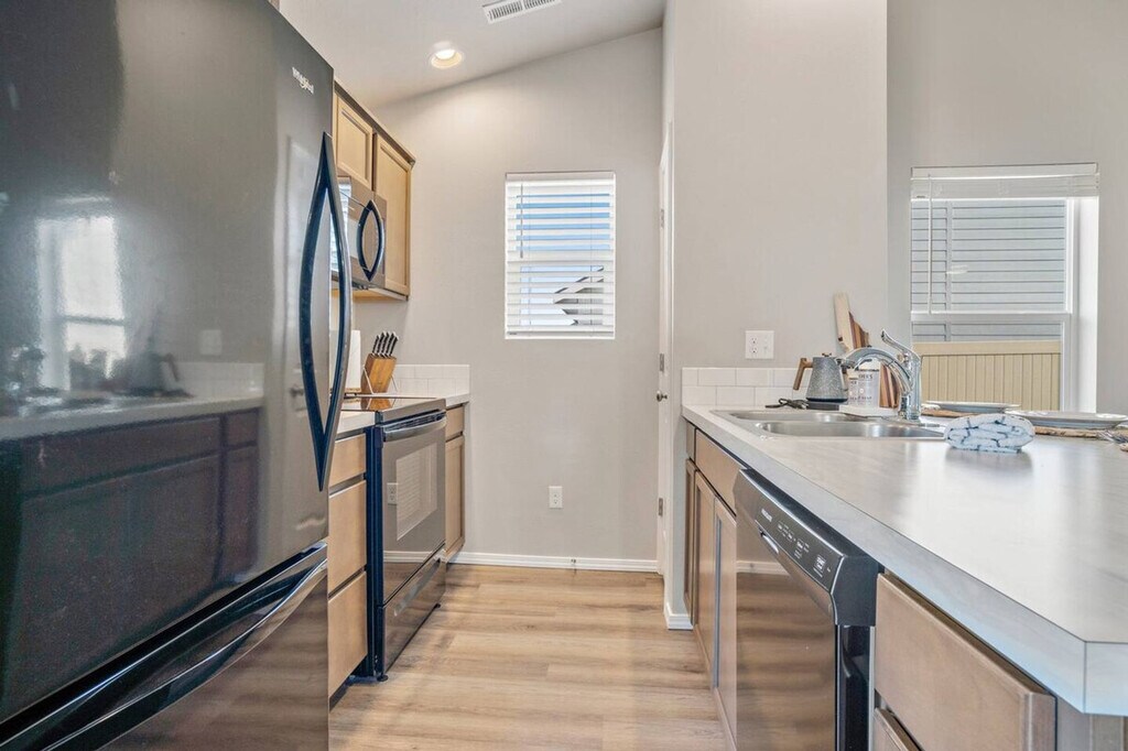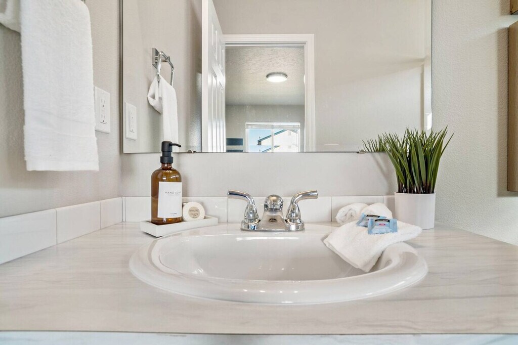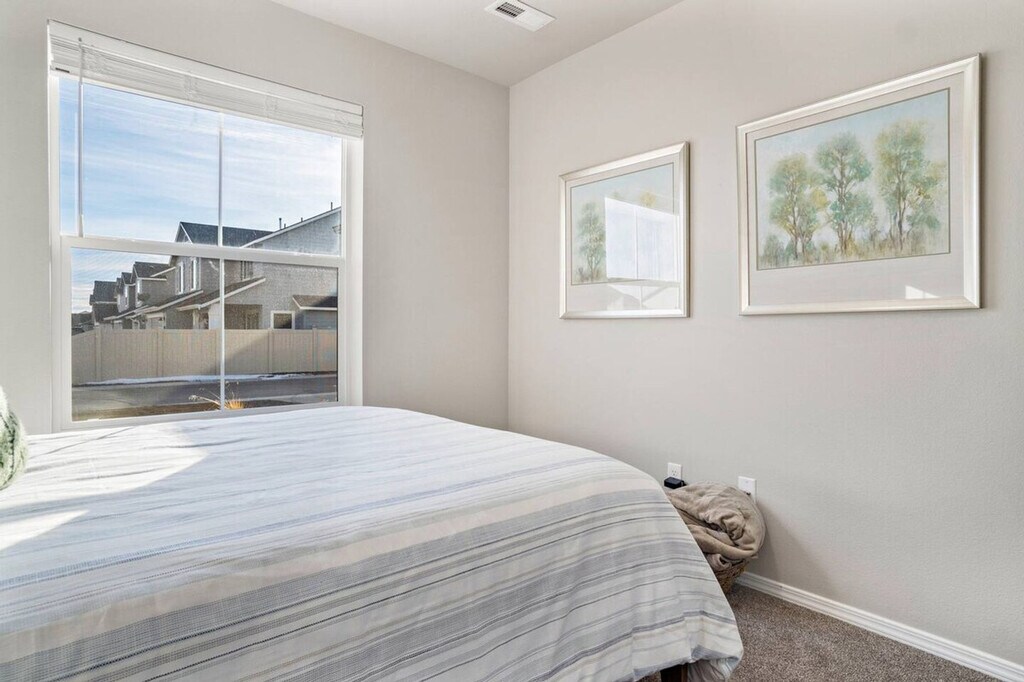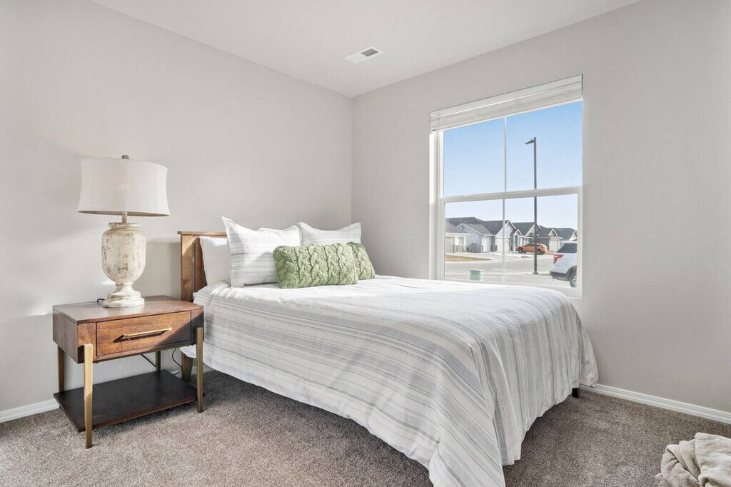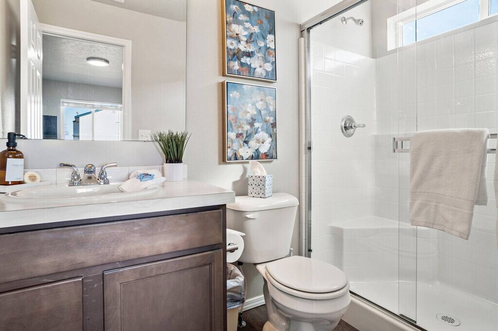 Stay in this newly built, gorgeous home in Caldwell and feel at home with its fast Wi-Fi, large TVs in the master and living room, and a fully equipped kitchen. This professionally cleaned and sanitized residence offers a spacious backyard for relaxation and is conveniently located 5 minutes from I-84 and 10 minutes from Indian Creek Plaza. The beautifully decorated space, designed by a local interior designer, features a master bedroom with a huge king-size bed, a queen-size bed, two twin-size beds, and a sofa in the main living room. The kitchen is fully equipped with appliances such as a microwave, fridge, electric stove, and dishwasher, along with glasses, mugs, dishes, and cutlery. Complimentary Wi-Fi and coffee are provided, along with a starter pack of toiletries. Secure double car garage parking is available for your convenience. This home is ideally situated for easy access to all of the Treasure Valley, being just 5 minutes from I-84. Enjoy the proximity to Indian Creek Plaza, only 10 minutes away, and a small park with a playground area on the same block. The home permits occupancy for up to 7 people. Easy self-check-in is available via a secure door keypad. Guests are welcome to use any part of the home and yard, except for two bins in the garage reserved for cleaning crew supplies, which are locked. The home is remote work-friendly with fast Wi-Fi, making it ideal for working remotely.