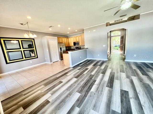 WELCOME TO YOUR AMAZING HOME at 11603 Bathgate Ct,New Port Richey in the UPSCALE,gated community of Waters Edge. This WONDERFUL 3 bedrooms,2 bathrooms,2 car garage home is located on a quiet,end street with a cul del sac. PRIME exterior features are the FULLY FENCED backyard with a WIDE OPEN grassy field & a COVERED patio. The front yard is BEAUTIFULLY landscaped with easy-breezy TROPICAL plants for easy maintenance. As you walk through the front door into the foyer,there will be 2 bedrooms & the guest bathroom on the right side. The dedicated laundry room will be on the left and from there,the attached garage can be accessed. Strolling along the foyer,you will step into the living room & notice the open floor plan of the family room,dining area & kitchen brightened up with NATURAL sunshine streaming through the large picture window & sliding glass doors. The GOURMET kitchen features all stainless steel appliances,mosaic backsplash,pantry closet,recessed lighting,GRANITE countertops & breakfast bar. A LOVELY chandelier & framed mirrors on the wall highlight the dining room. The MARVELOUS primary bedroom can easily accommodate king size furniture & has a SPACIOUS walk-in closet. The private bathroom consists of dual sinks,expansive counters,tub & shower combination with matching mosaic strip for fluidity of design. There are newer LUXURY VINYL FLOORS installed in all 3 bedrooms,living room & hallways. Ceramic tiles floors dress up the kitchen,bathrooms & laundry room (NO CARPET ANYWHERE). To rent this home,first month's rent & 1.5X security deposit are required along with a pet fee if applicable. 1 non-aggressive breed pet is welcome. HOA board approval is required for all tenants. Rent includes: CABLE TV,INTERNET,TRASH (2X week & recycling pickup),RECLAIMED WATER FOR IRRIGATION & COMMUNITY AMENITIES! The 9000sqft clubhouse has a gym,social gathering area with kitchen,movie theater,game room & staffed office. Outside you'll find a grand swimming pool,kiddie pool,basketball court,playground,fishing pier & boat dock leading to the 70-acre lake at its center. MAKE THIS YOUR FUTURE HOME! MLS# W7883103
