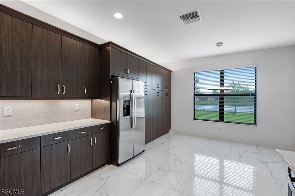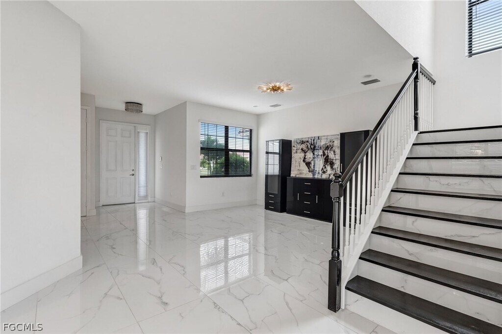 Experience luxury living in this stunning lakefront home in the highly sought-after Marina Bay community. Built in 2021 and beautifully upgraded throughout,this exceptional residence sits on a premium oversized lot and features one of the longest paved driveways in the neighborhood,offering both impressive curb appeal and added convenience. Inside,the home showcases a bright,modern open-concept design with upscale finishes at every turn,including oversized 24x48 porcelain tile flooring,sleek contemporary cabinetry,quartz countertops,premium appliances,custom fixtures,an extended pantry,solid core interior doors,frameless glass showers,oversized baseboards,upgraded interior and exterior electrical features,a whole-home water filtration system,hurricane impact windows and doors,and an advanced alarm system. The spacious primary suite serves as a private retreat with a spa-inspired bath featuring marble flooring,quartz countertops,and designer finishes. Step outside to enjoy peaceful lake views from the covered lanai,with plenty of backyard space to relax and unwind. Located in the amenity-rich Marina Bay community,residents enjoy a lifestyle of comfort,convenience,and resort-style living in one of the area’s most desirable neighborhoods.