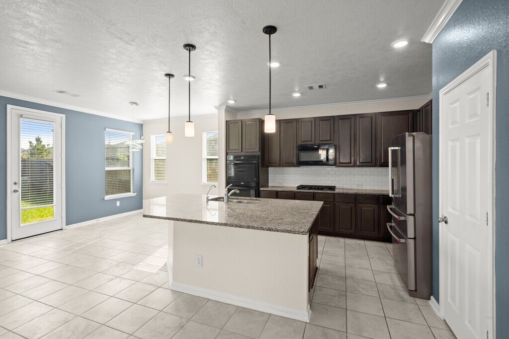 Unexpected! Huge Living Room Open to Kitchen & Breakfast Room. Must see to Believe. Granite Counters w/ Island Seating,Double Ovens,Gas Cooktop,Walk-In Pantry,Water Filtration System & SS Refrig Remains! 1st Floor Office & 1/2 Bath. Gameroom & 4 Bedrooms Up. Need to see the Spacious Primary Suite & Oversized Walk-In Closet Too. MLS# 57368954